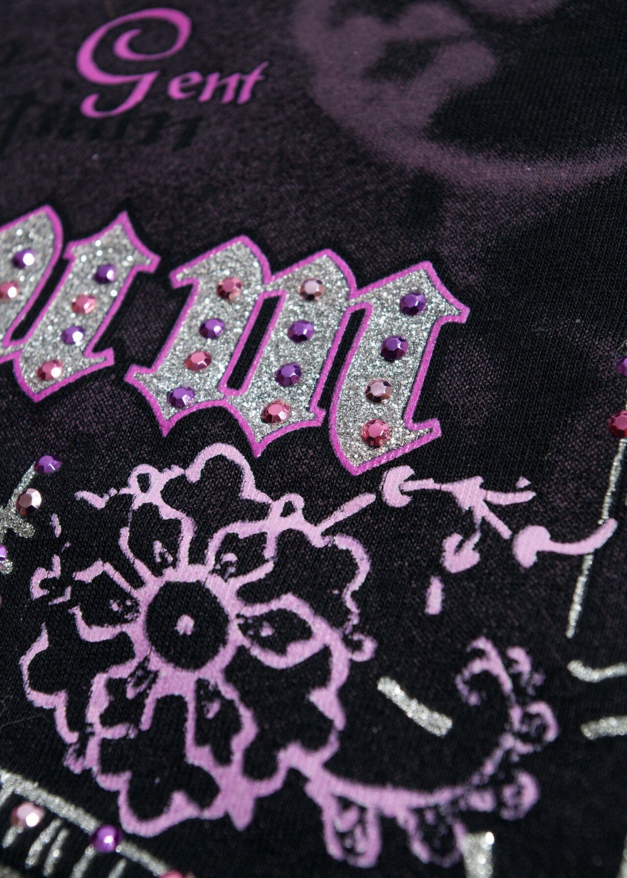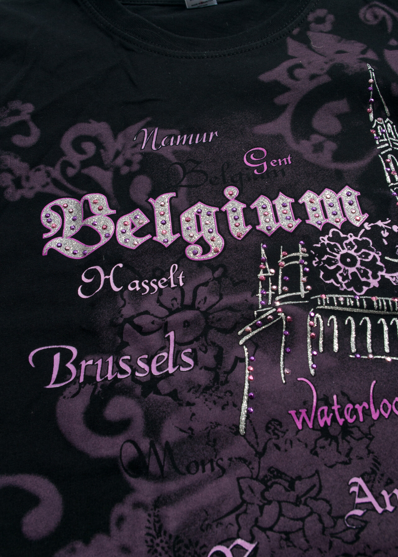 This Y2K vintage t-shirt is your ticket to a Euro summer dream, complete with gothic letters and enough silver rhinestones to outshine your favorite boy band. Made from comfy black cotton, this printed baby tee is ready to transport you back to the mid 2000s.