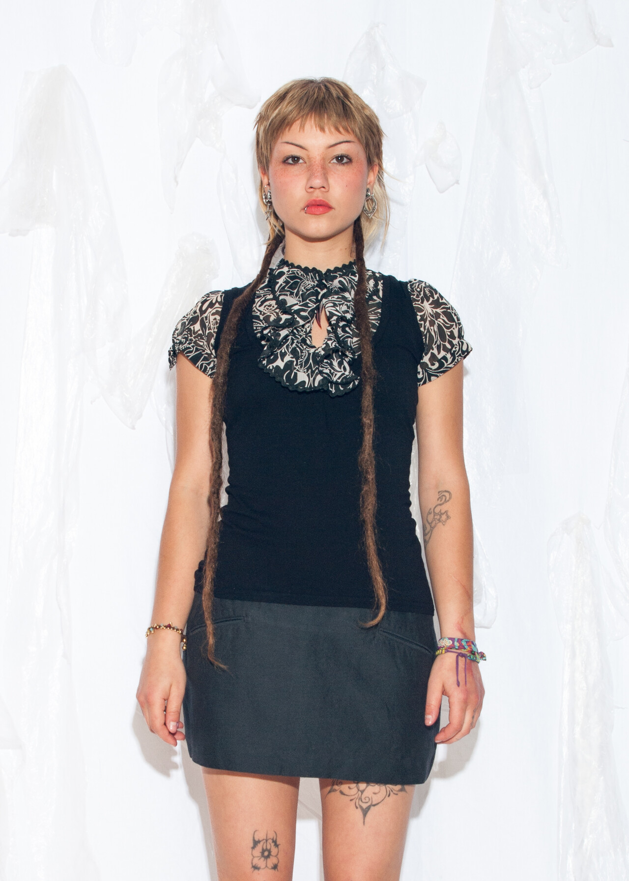 This Y2K vintage vest-top chimera is your ticket to becoming the ultimate office siren, frills and all, while channeling those early 2000s vibes!