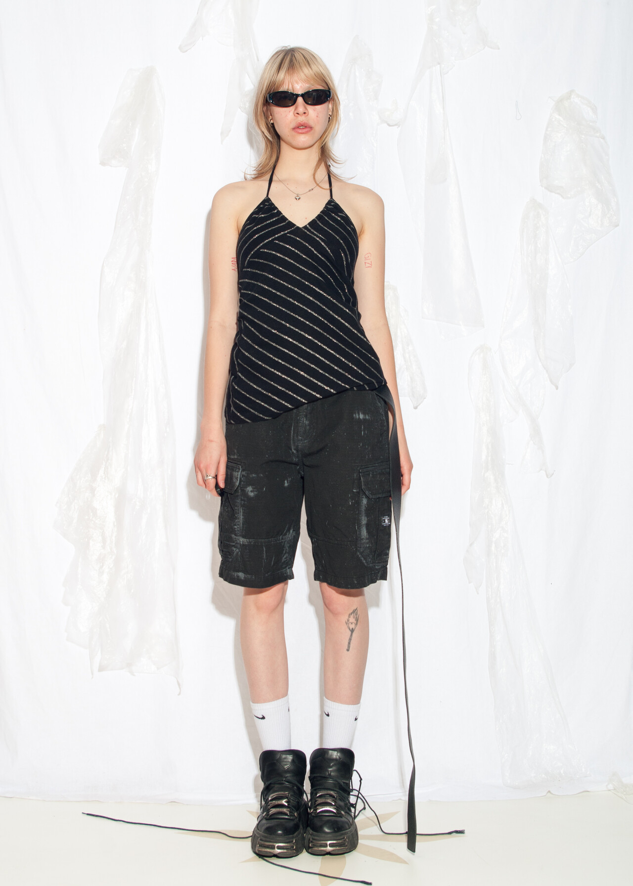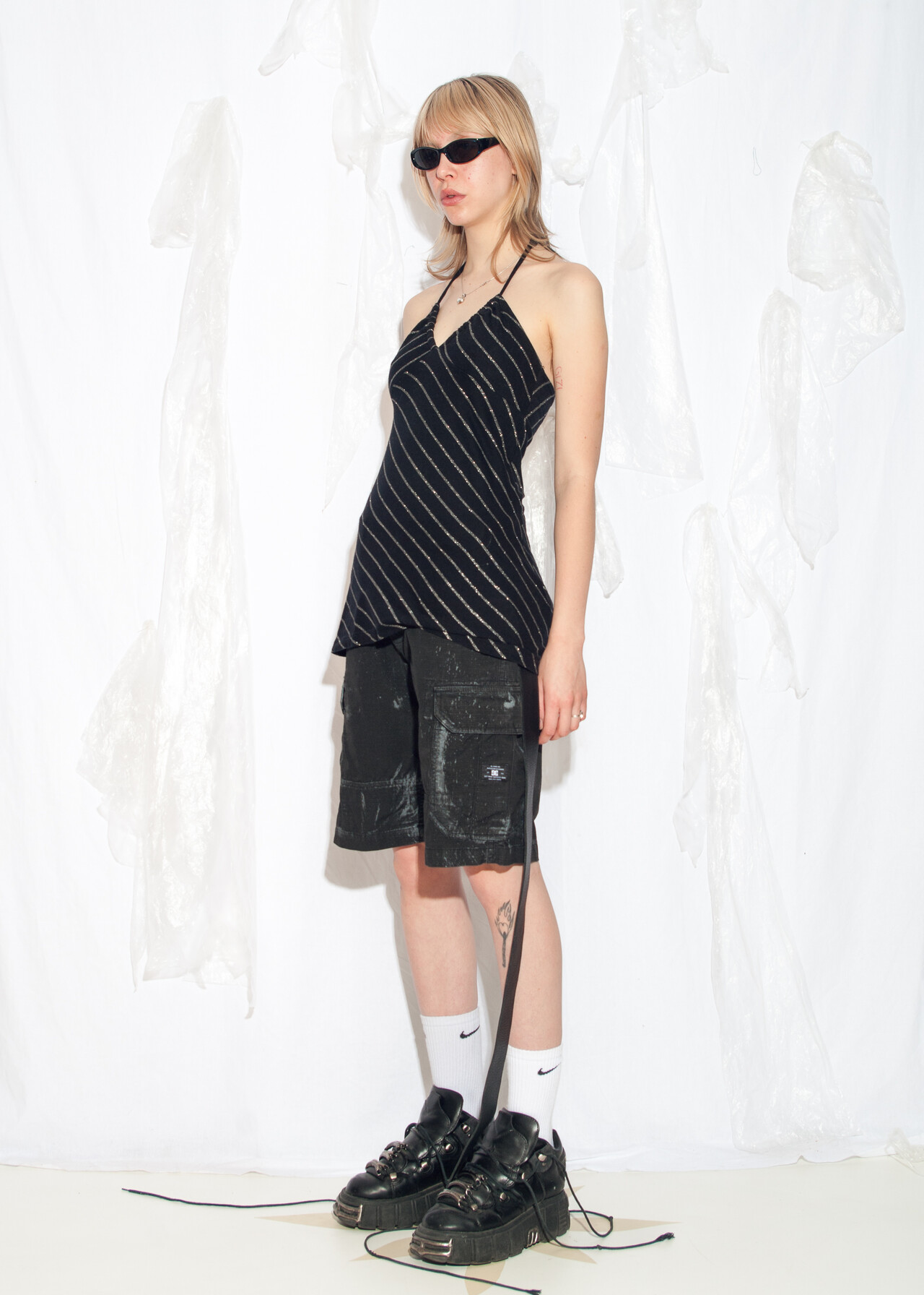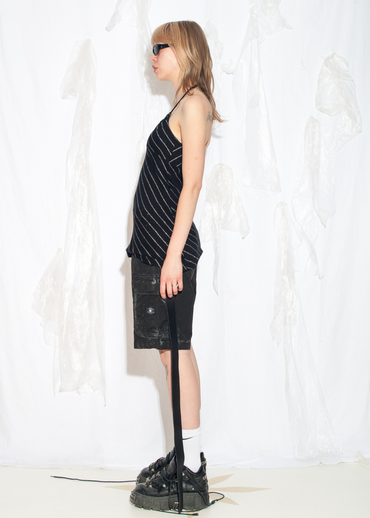 Be the first to review “Vintage Y2K Halter Top in Black and Silver Striped” Cancel reply