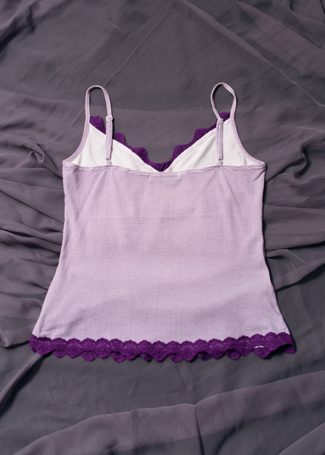 Tags: 2000s style clothing, boho romantic blouse, cotton top, cyber grunge, lace slip top, purple camisole, spaghetti straps, whimsigoth, y2k vintage fashion