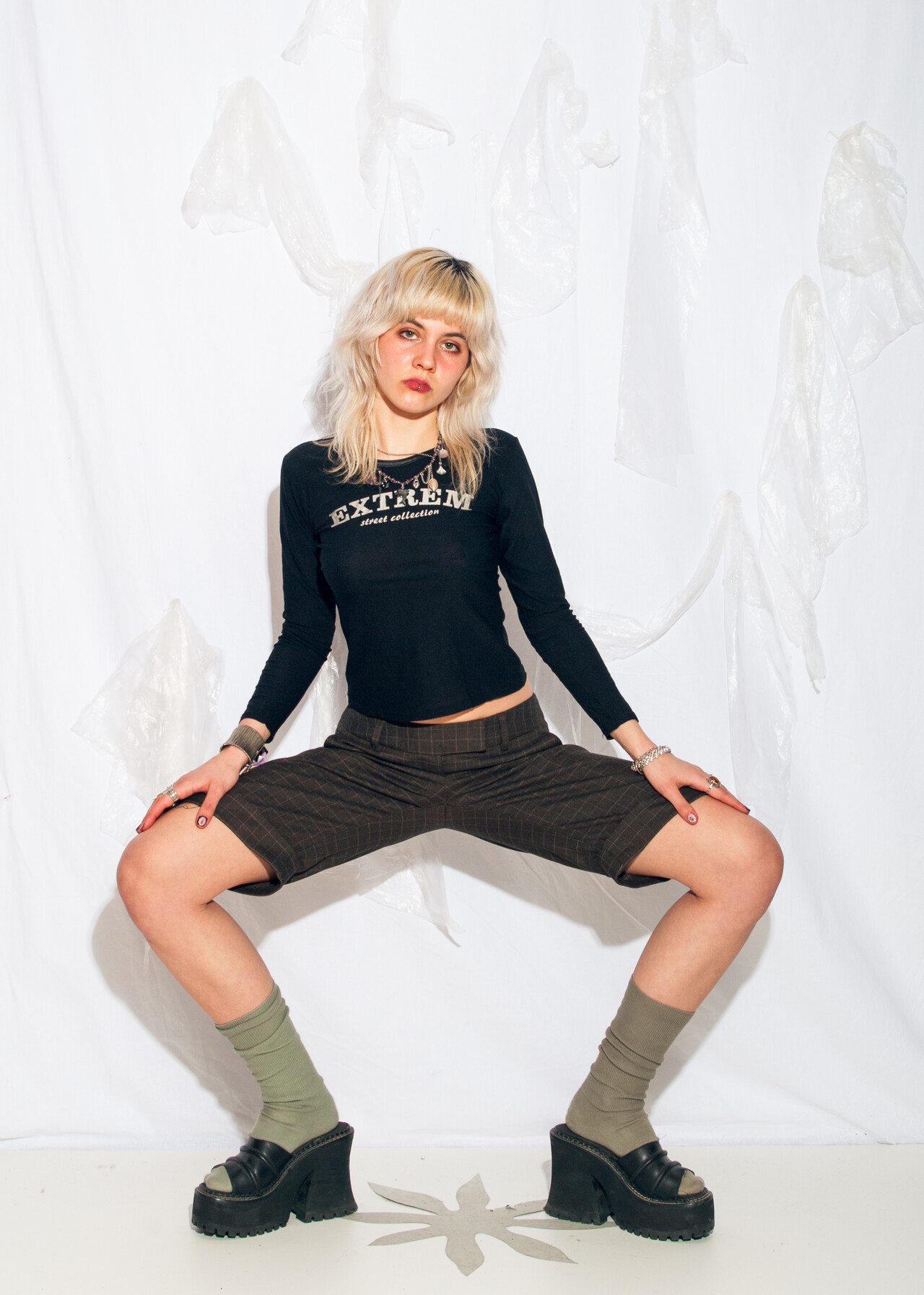 This Y2K vintage mesh techno top is your ticket to time-traveling back to the era when slim fit ruled and long sleeve baby tees were cooler than your flip phone’s Snake game.