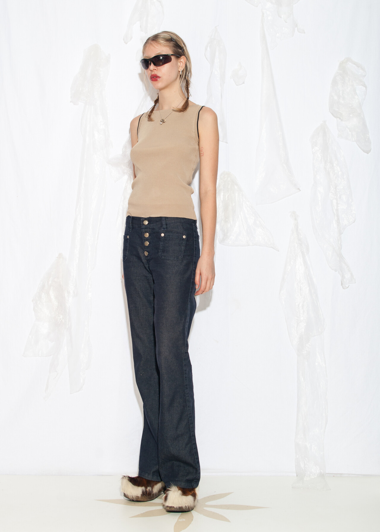 This silk beige Y2K vintage rib knit vest is your ticket to mastering the minimalist look while channeling your inner office siren with a dash of early 2000s magic.