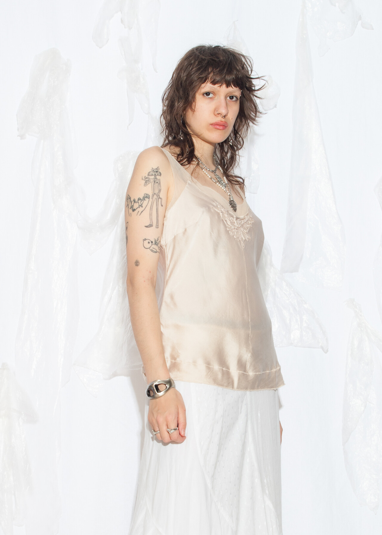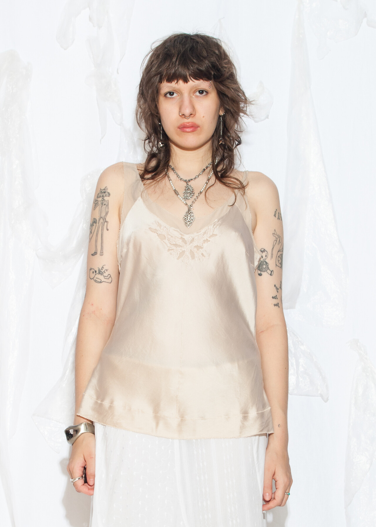 Tags: 2000s style clothing, delicate lingerie, lace camisole, pure silk blouse, romantic fearycore, satin bow top, slip top, y2k vintage fashion
