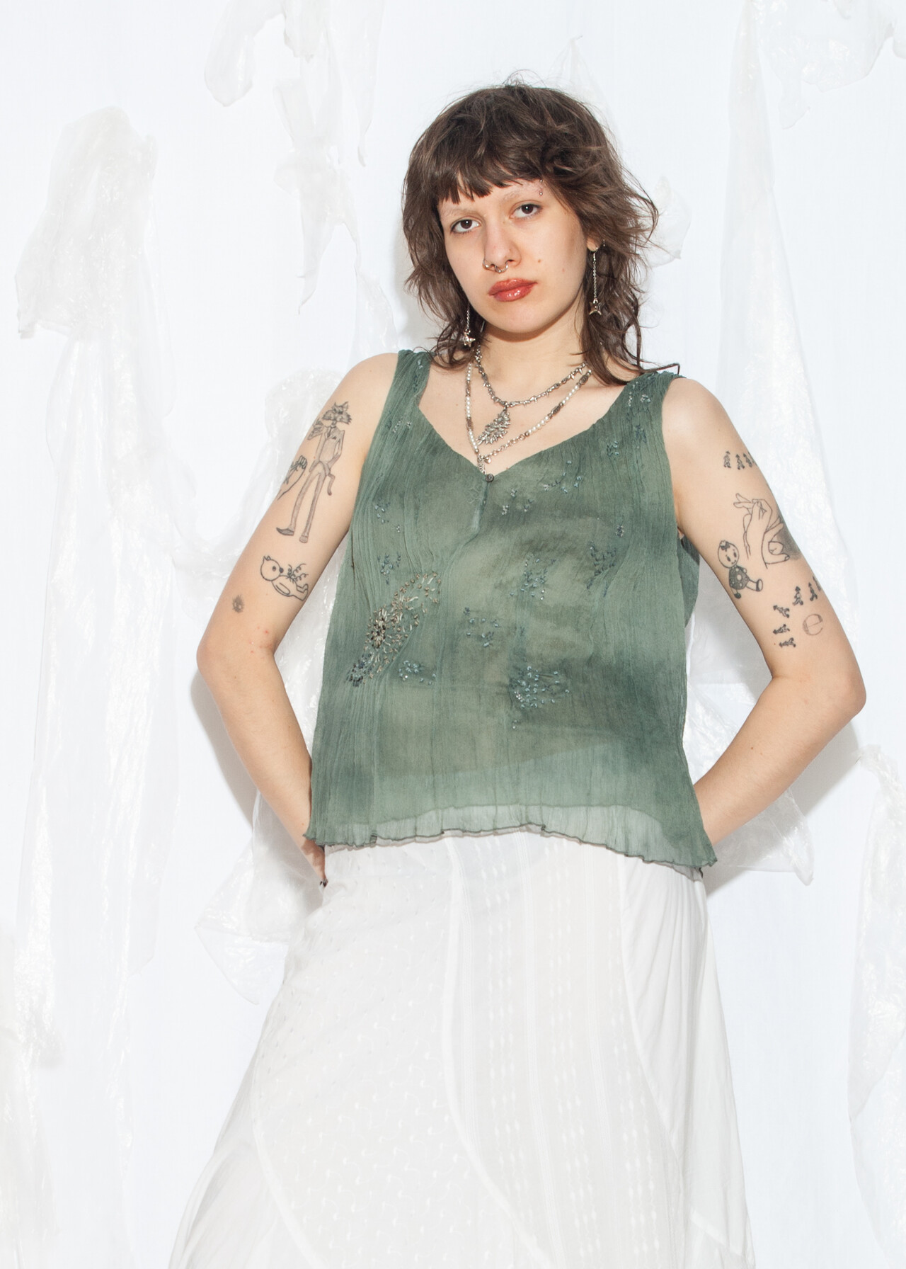 Tags: 2000s style clothing, embroidered top, fairycore grunge, layered vest, pure silk blouse, y2k vintage fashion