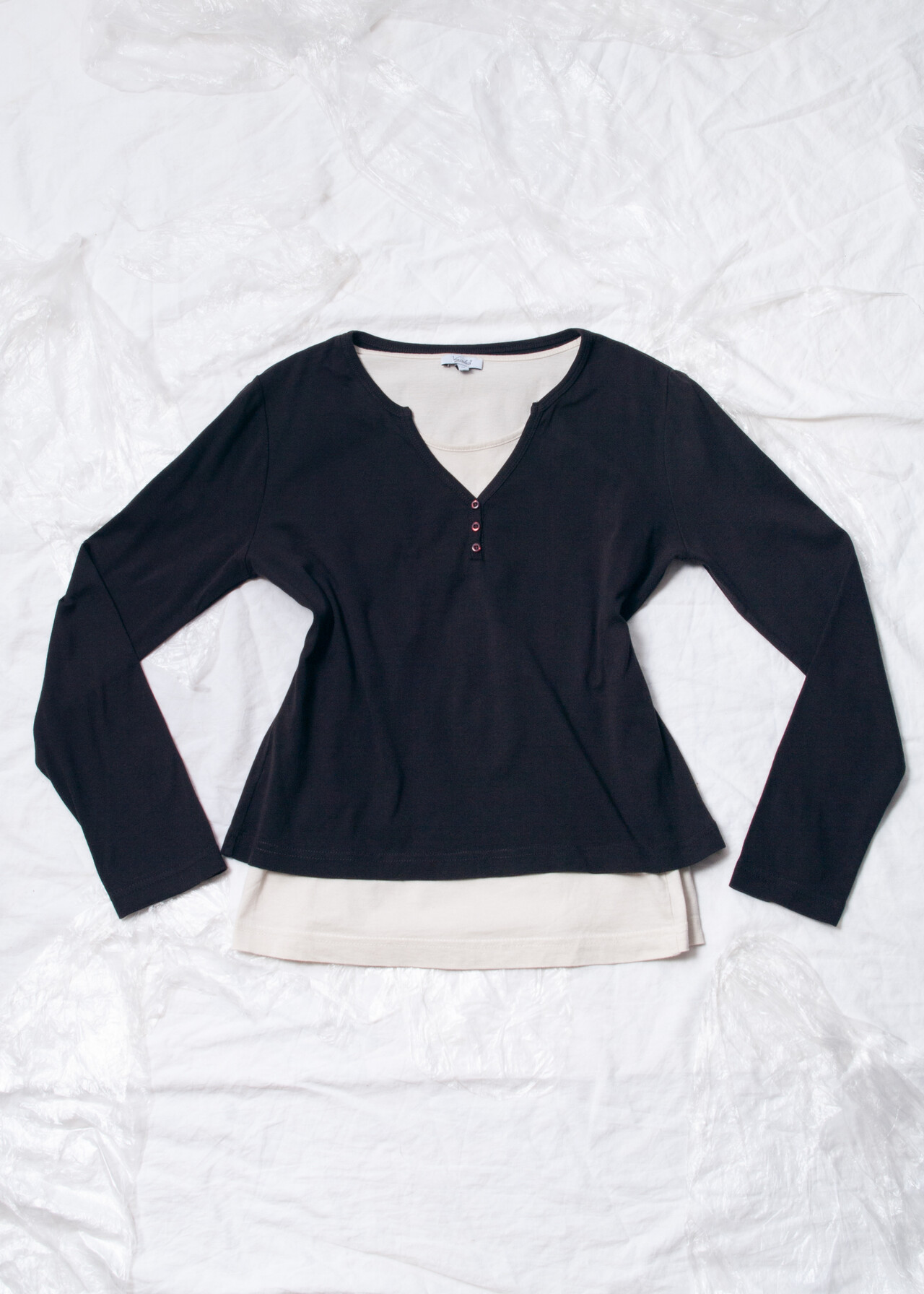 This Y2K vintage double layer top by vanilia is perfect for channeling your inner grunge queen with its cozy long sleeves and natural fabric.