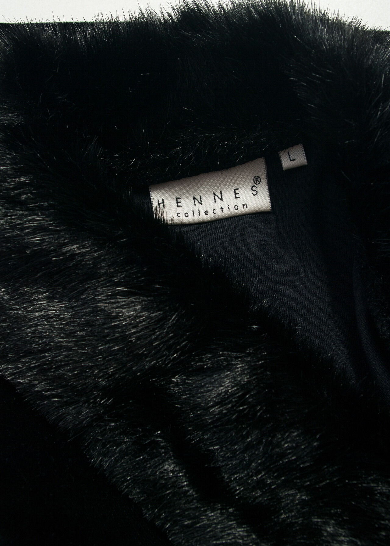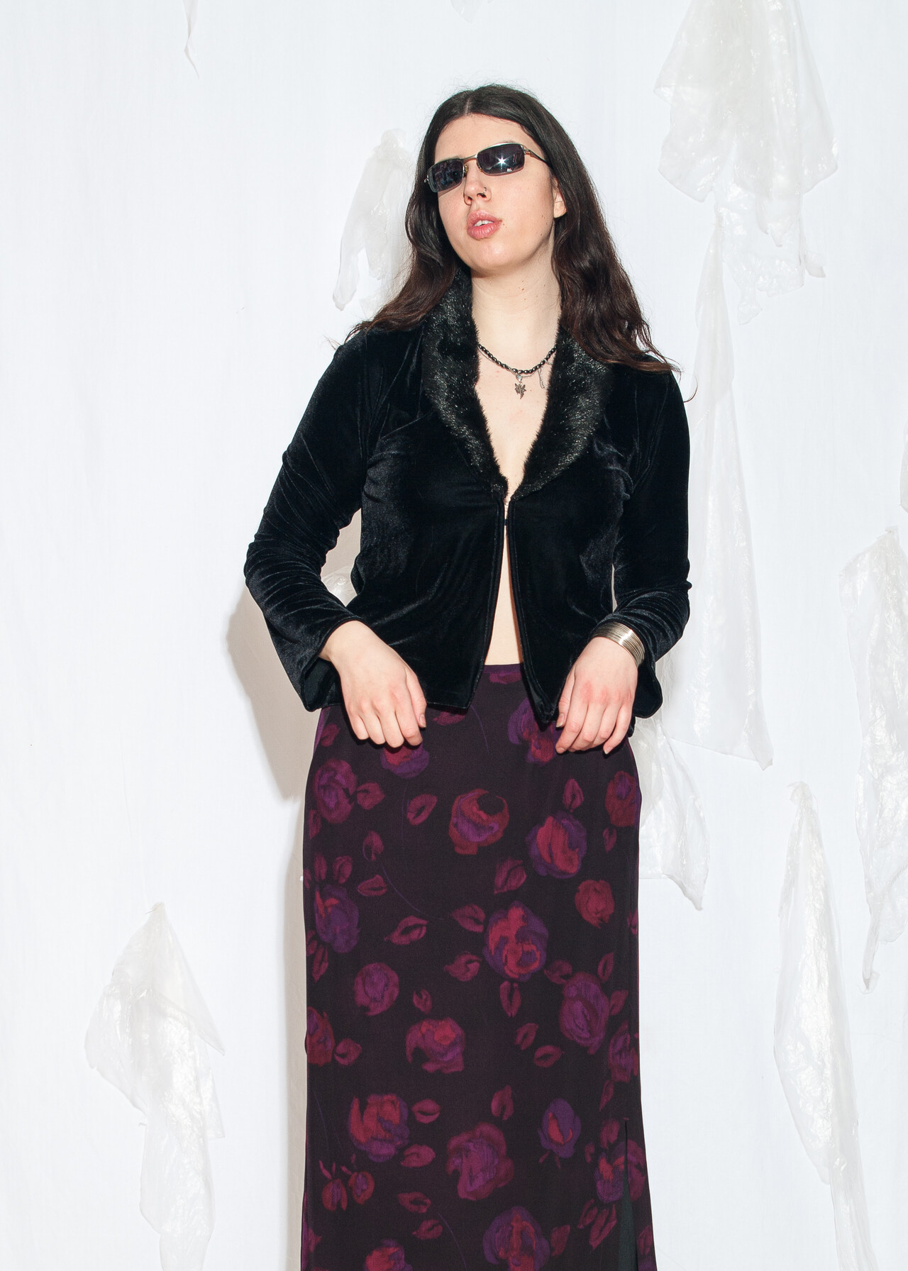 Vintage Y2K Velvet Cardigan with Faux Fur Collar in Black
