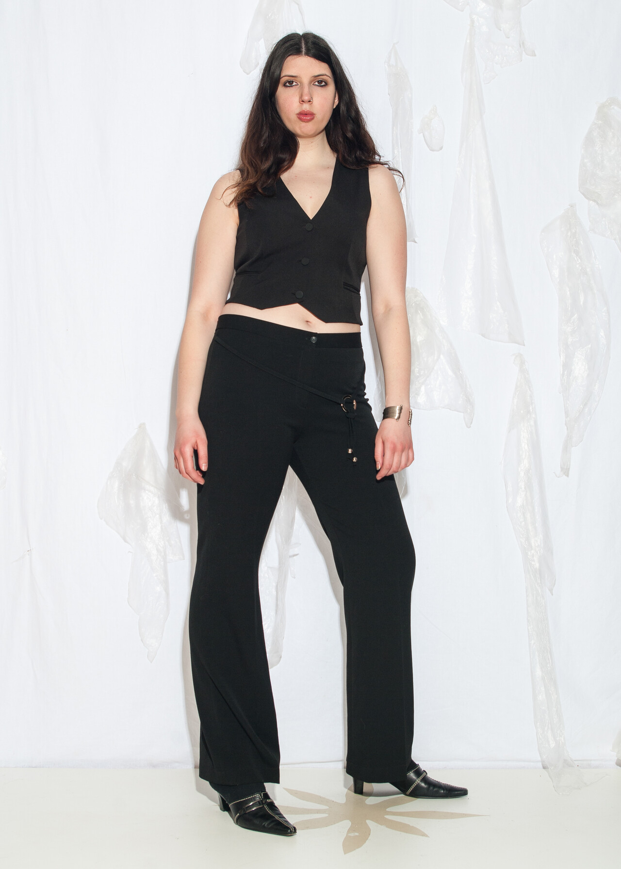 Tags: 90s vintage clothing, belted pants, business outfit, grunge look, high waisted flares, natural fabric, office siren, officecore aesthetic, y2k style fashion
