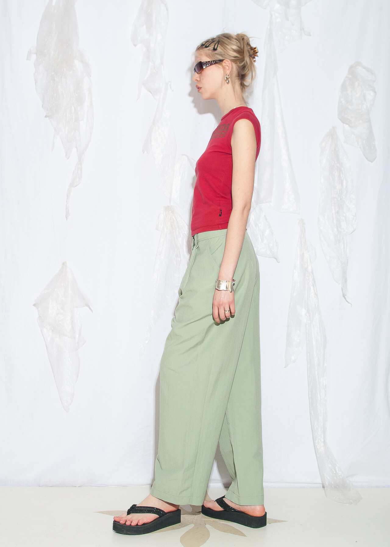 Vintage 90s Barrel Pants in Mint Green