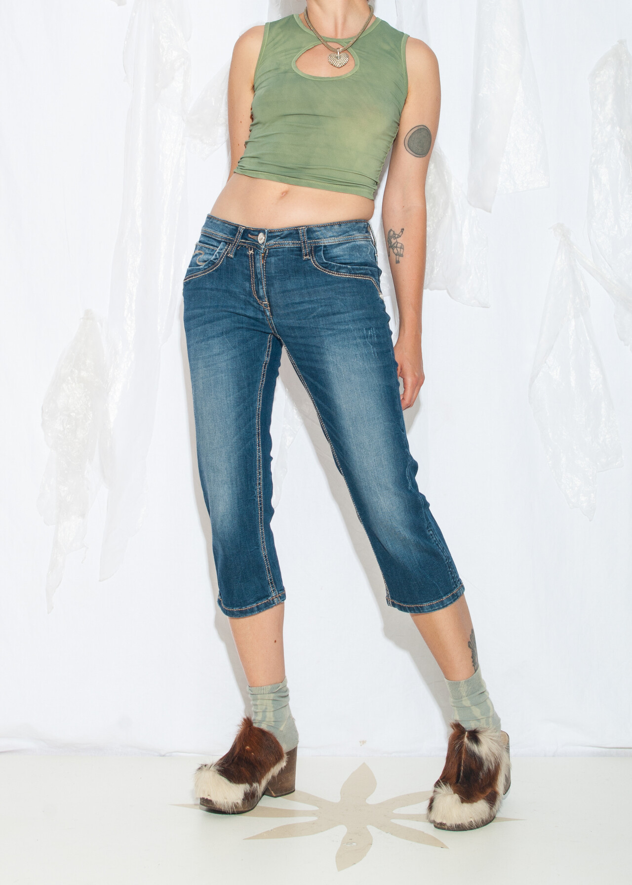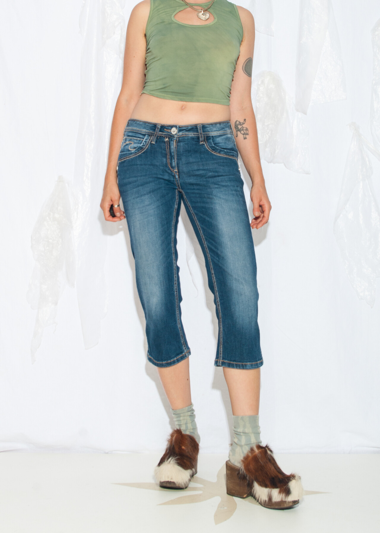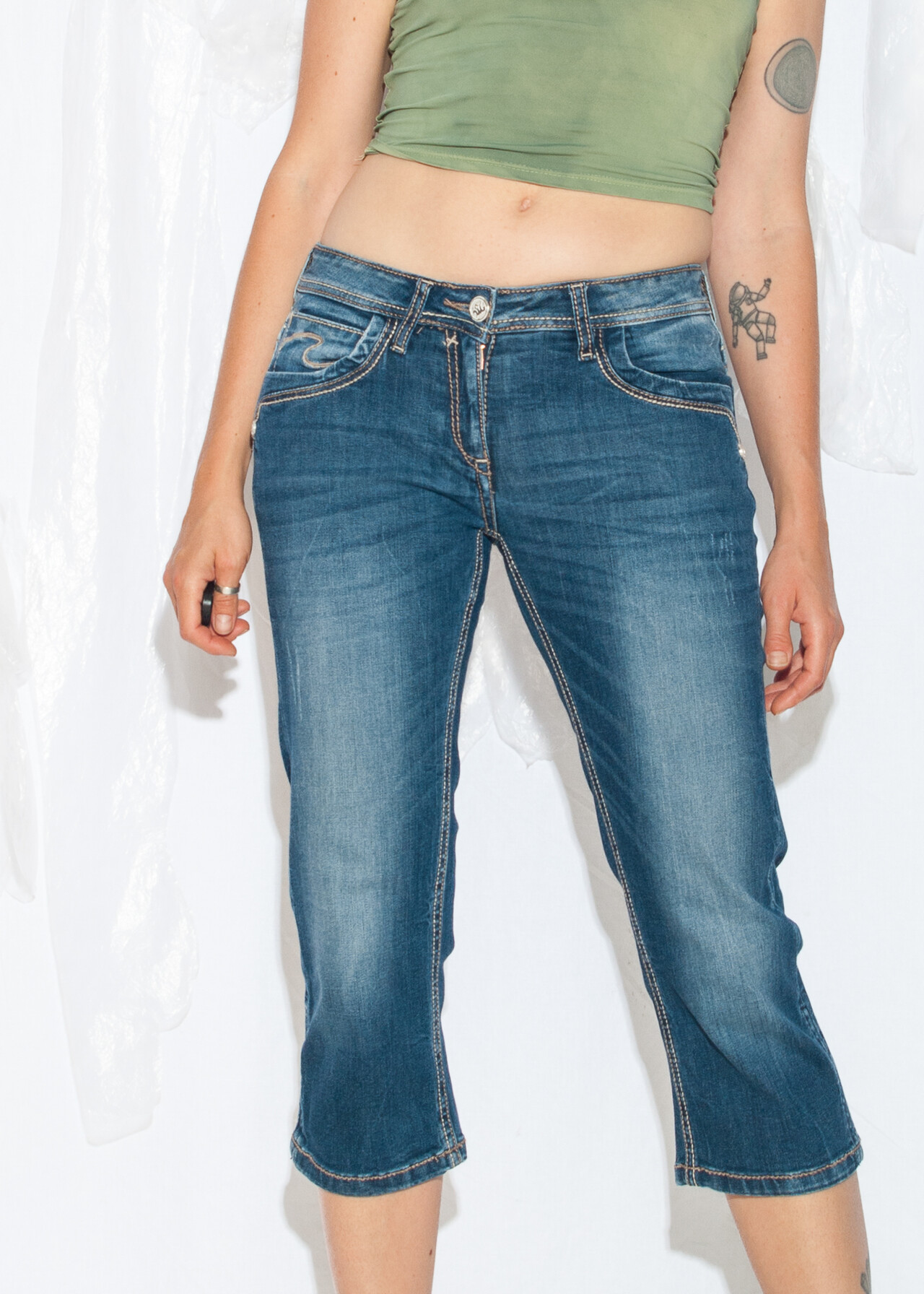 Tags: 2000s style clothing, capri jeans, low rise waist, pinterest aesthetic, short trousers, stonewashed denim, y2k vintage fashion