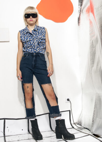 Reworked Wrangler jeans 90s vintage grunge cut-out denim