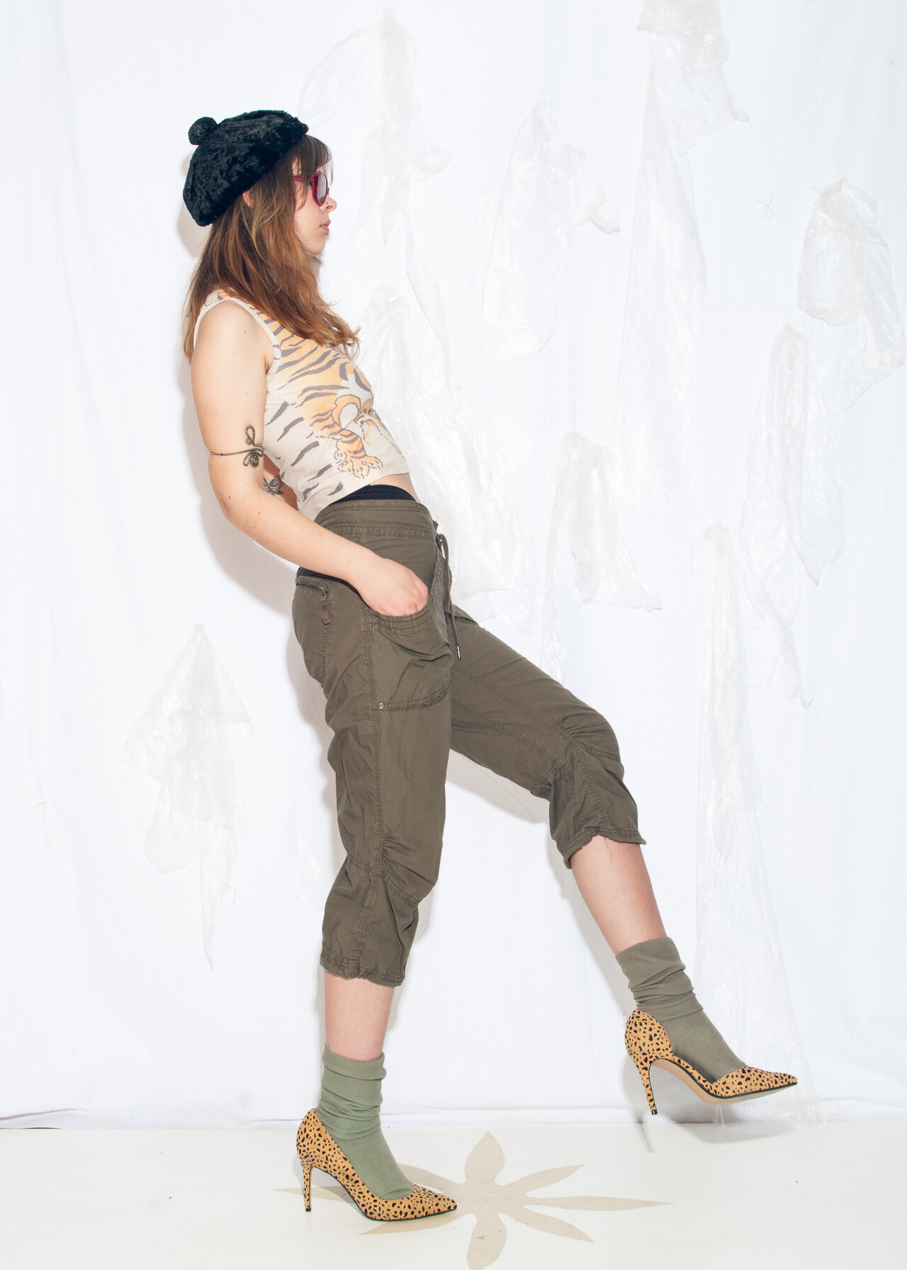 Tags: 2000s style clothing, cargo capri pants, low rise trousers, pocketed shorts, y2k vintage fashion