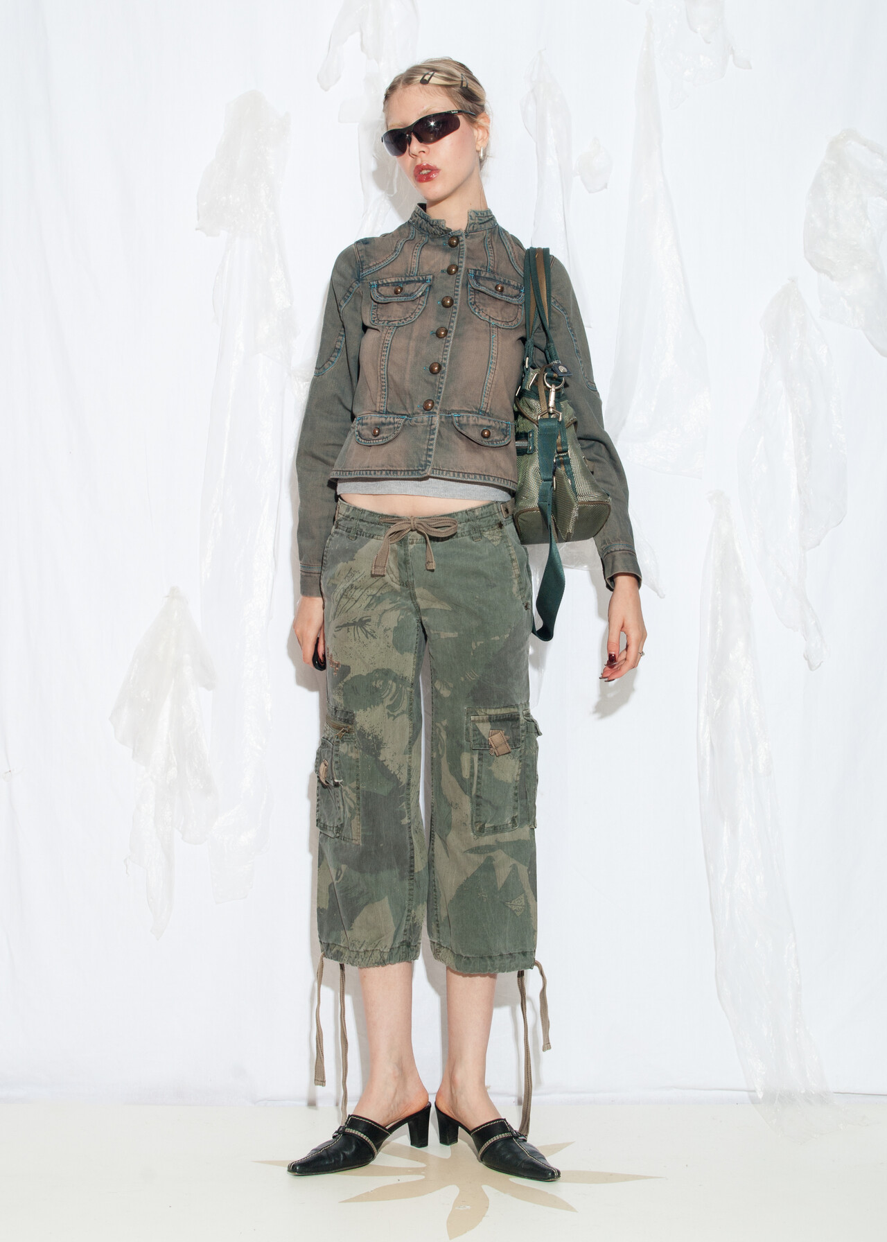 Vintage Y2K Cargo Capri Trousers in Camo Khaki