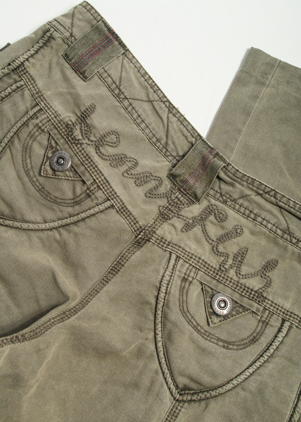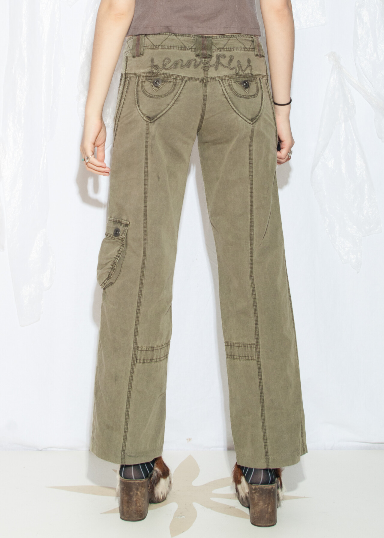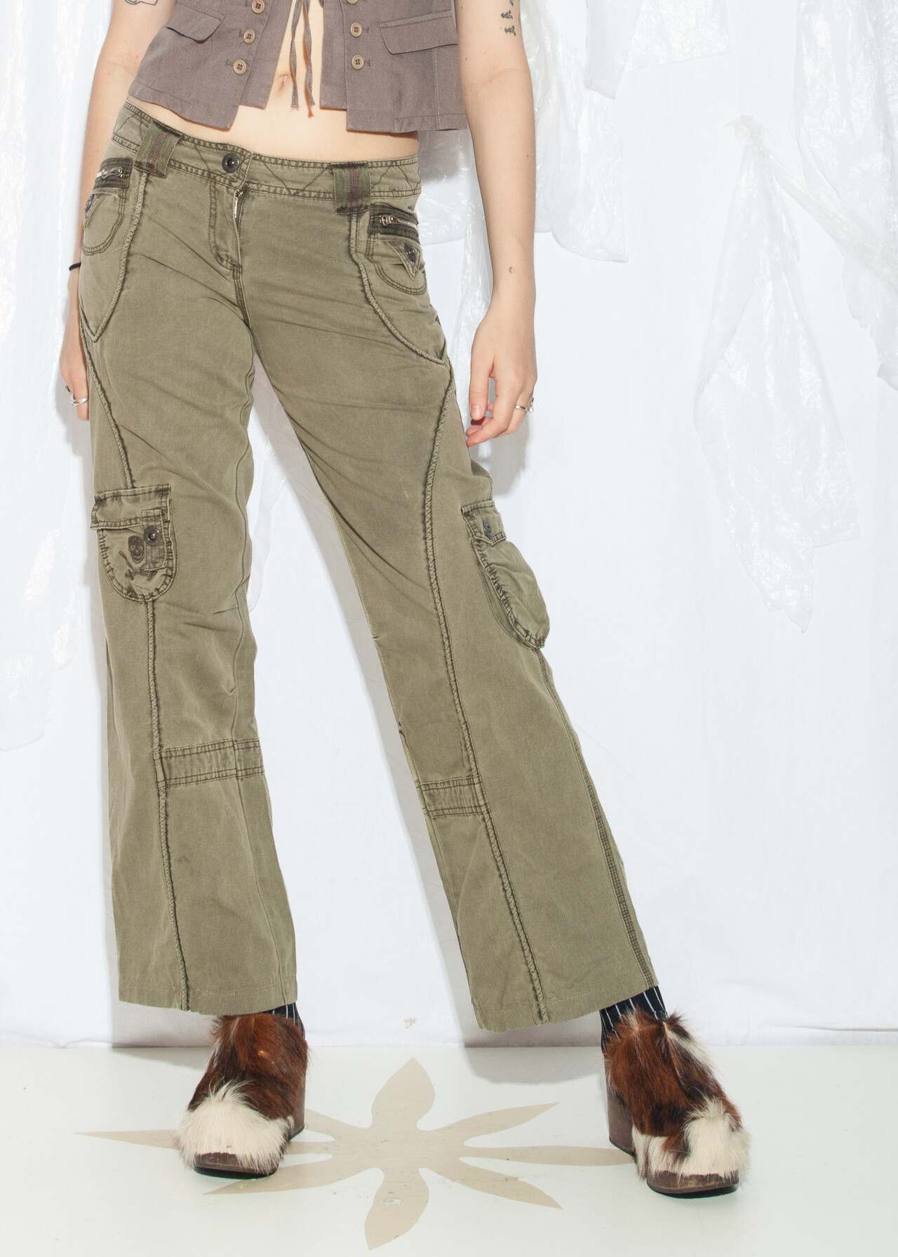These Y2K vintage flare cargo pants are the ultimate throwback to when low-rise waists and mud wash khaki green ruled the fashion world.