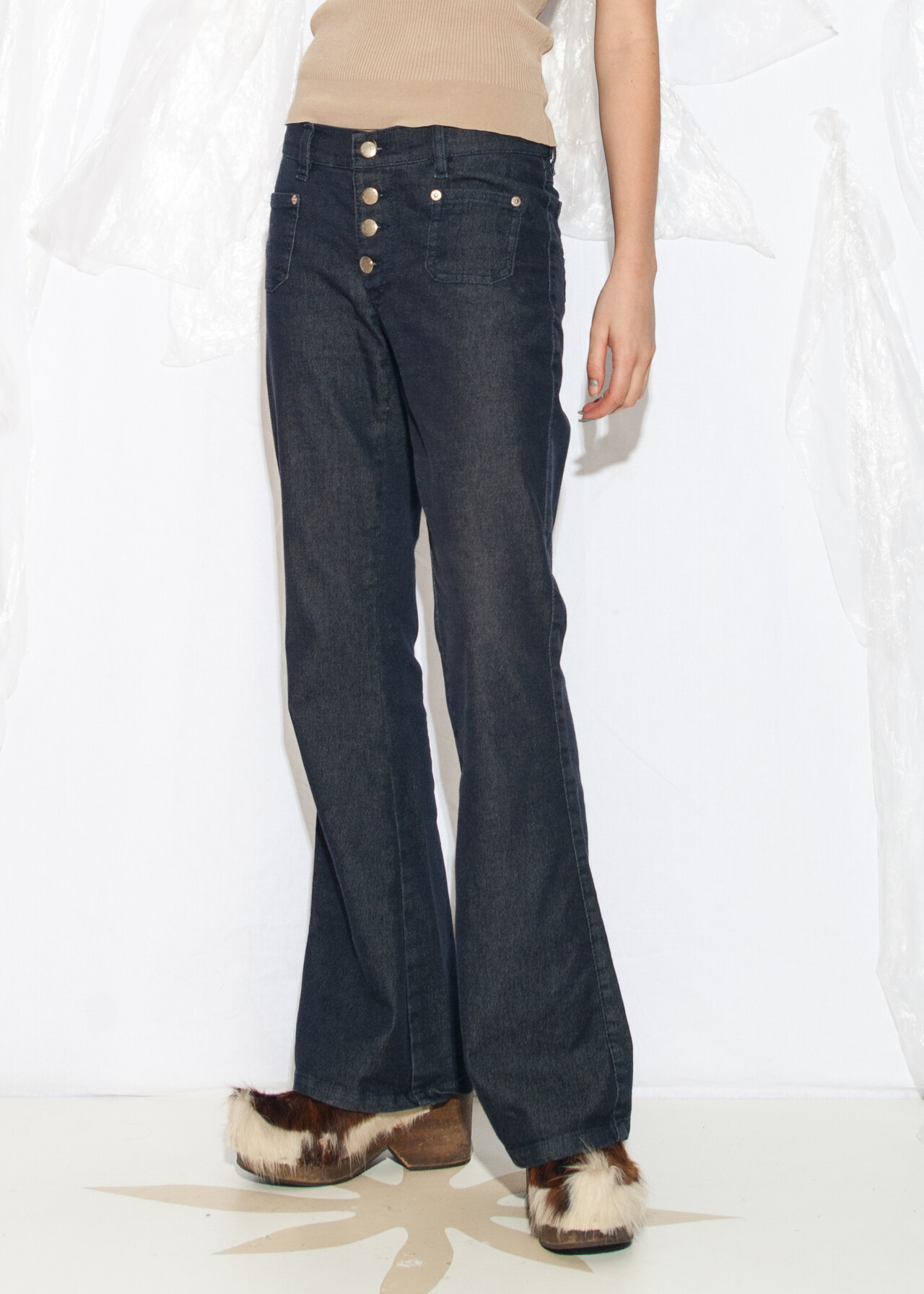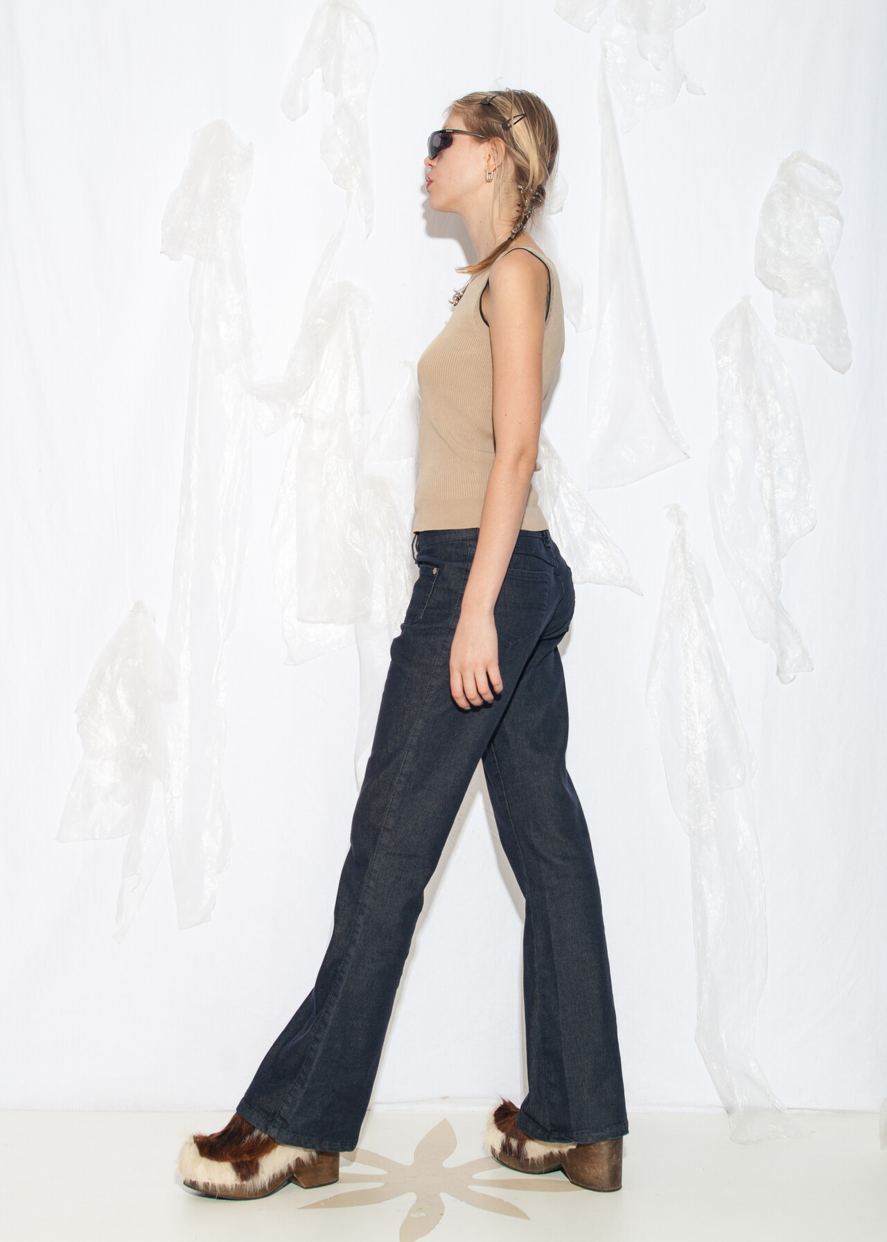 Tags: 2000s style clothing, bell bottoms, dark wash denim, denim pants, flare jeans, low rise bottoms, low waisted trousers, minimalist look, wide leg flares, y2k grunge outfit, y2k vintage fashion