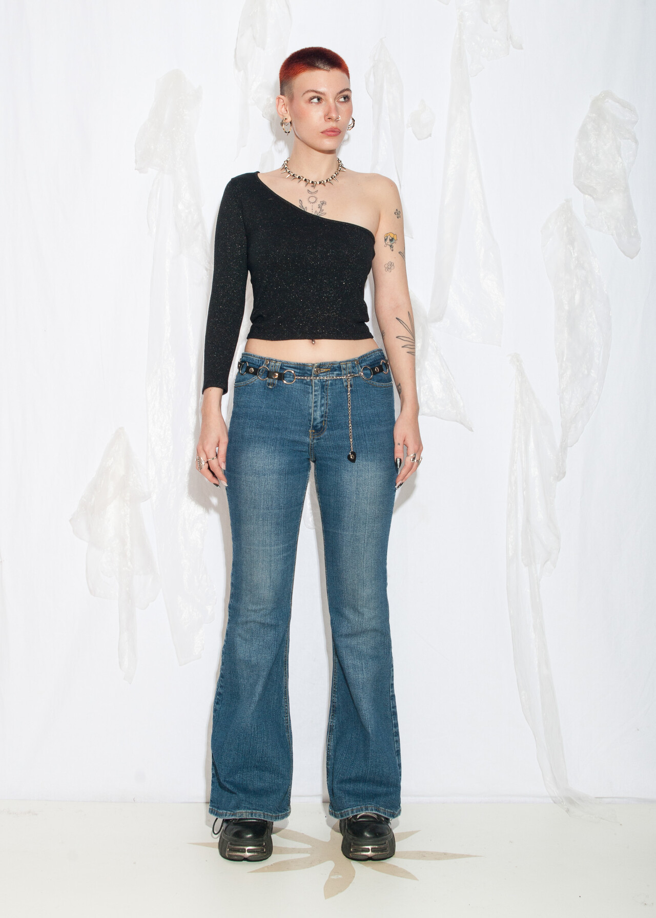 Tags: 00s streetwear, 2000s style clothing, bootcut jeans, low waisted trousers, middle rise bottoms, stonewashed denim, stretchy flare jeans, y2k grunge outfit, y2k vintage fashion