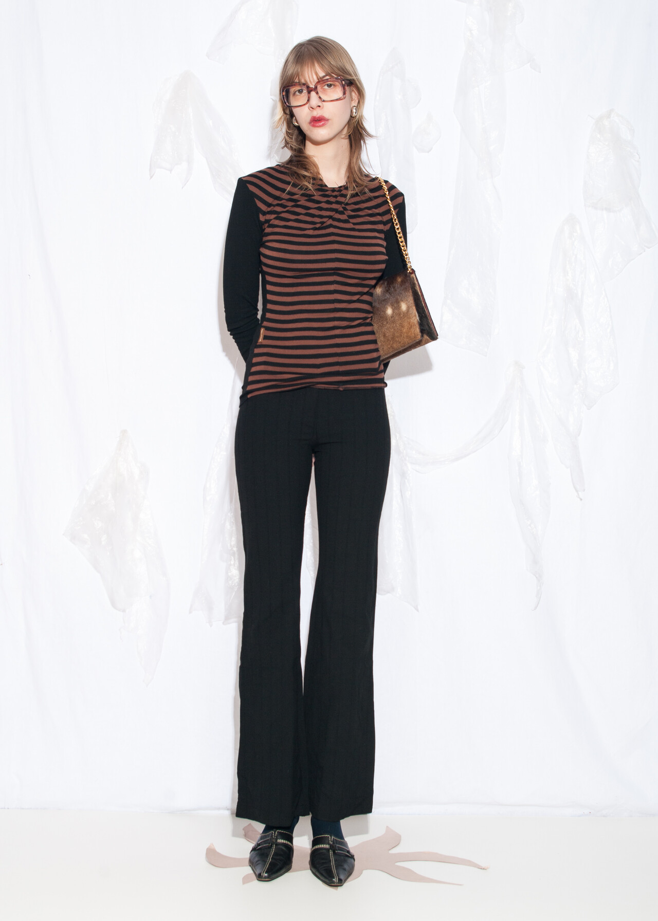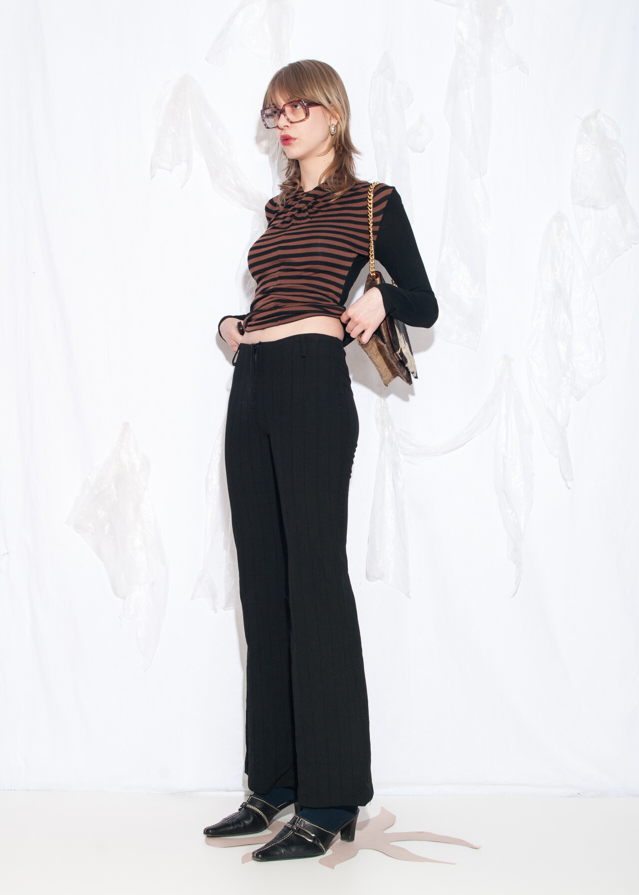 Tags: 2000s vintage style, flare trousers, middle rise waist, office siren