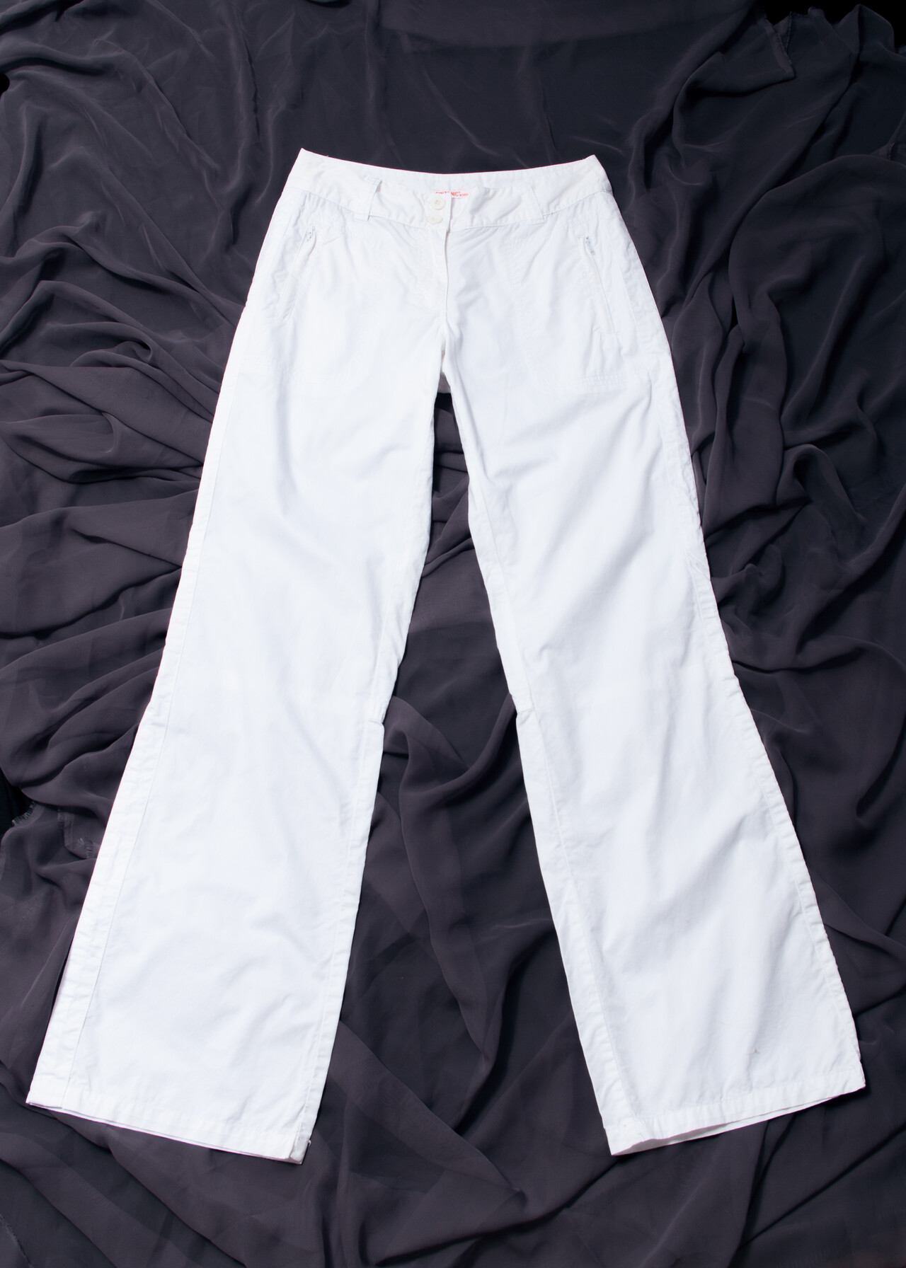 Tags: 2000s style clothing, flare trousers, low rise waist, summer bottoms, white cotton pants, wide leg jeans, y2k grunge outfit, y2k vintage fashion