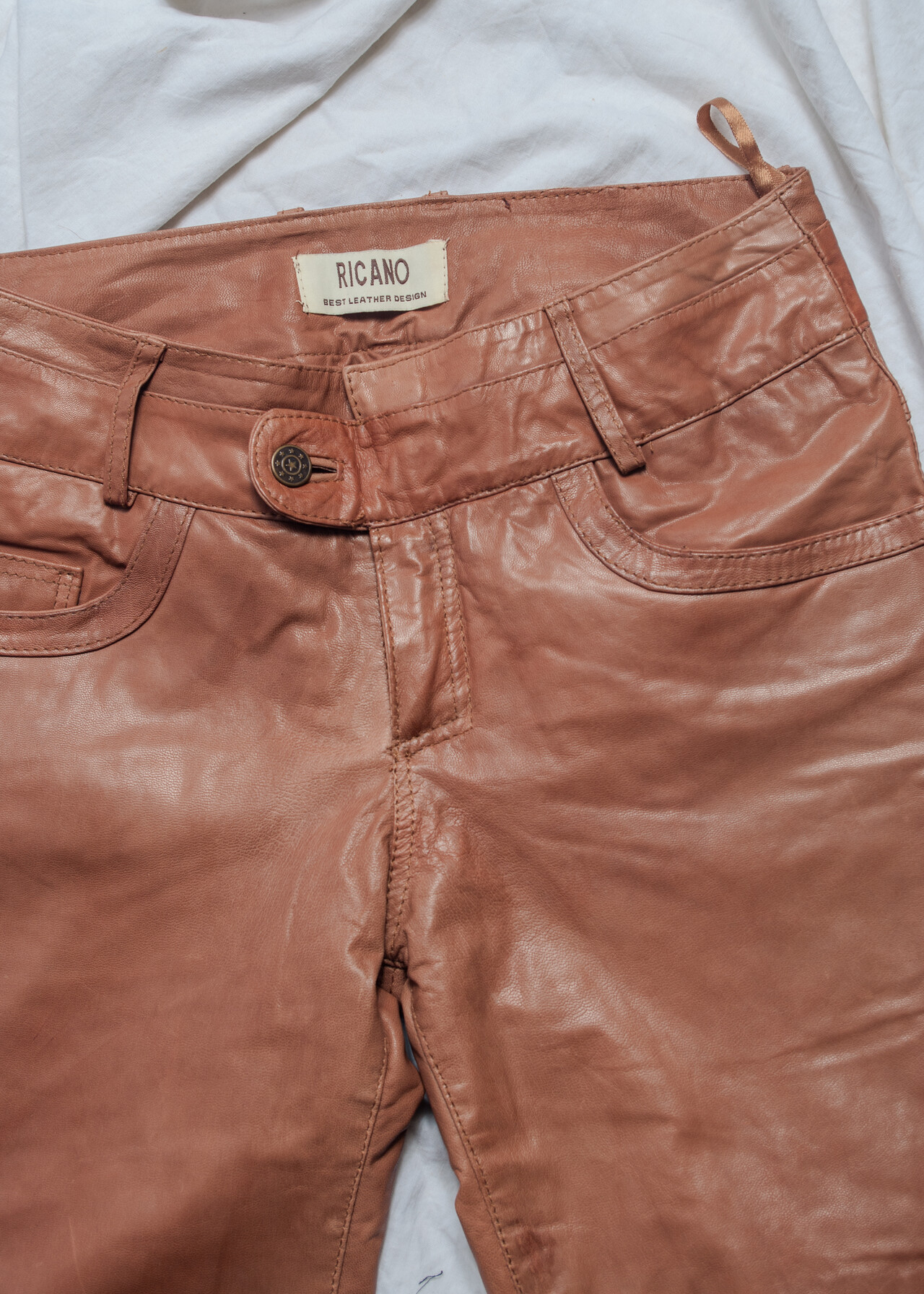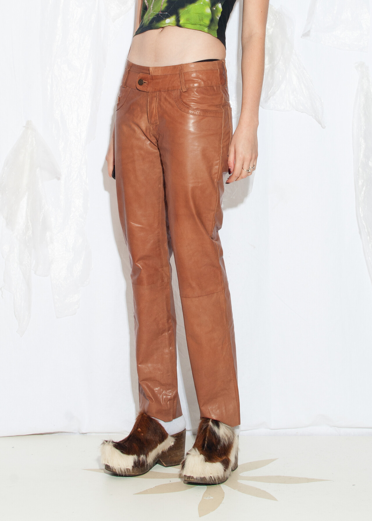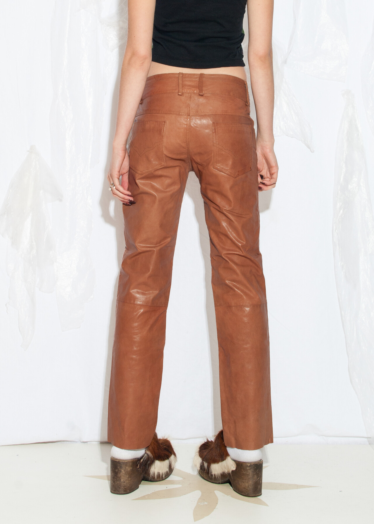 Tags: 00s streetwear, 2000s style clothing, indie outfit, leather trousers, low rise bottoms, low waisted trousers, natural brown, straight leg, y2k aesthetic, y2k grunge outfit, y2k vintage fashion