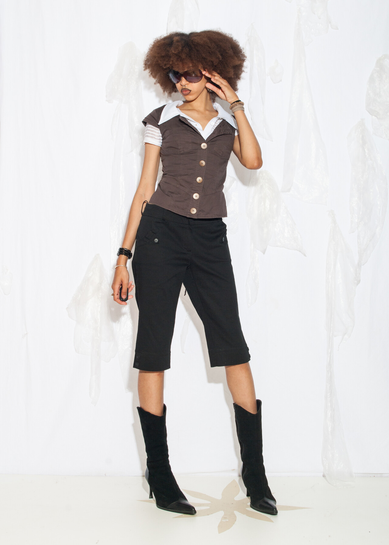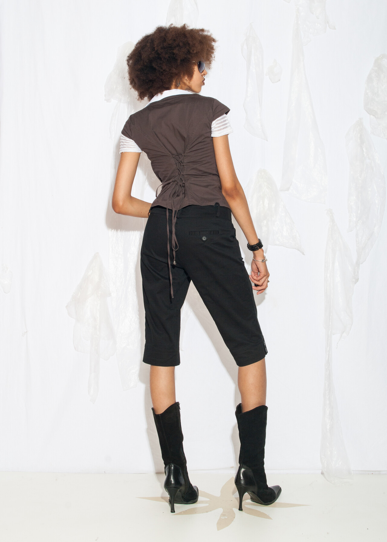 Tags: 2000s style clothing, black cotton, capri pants, low rise bottoms, low waisted trousers, office siren, officecore, whimsigoth aesthetic, y2k grunge outfit, y2k vintage fashion