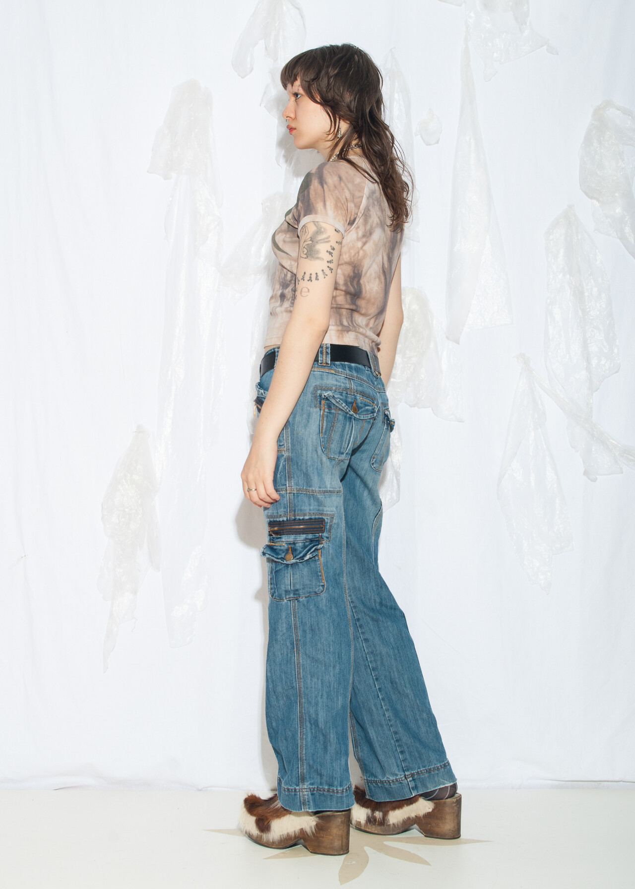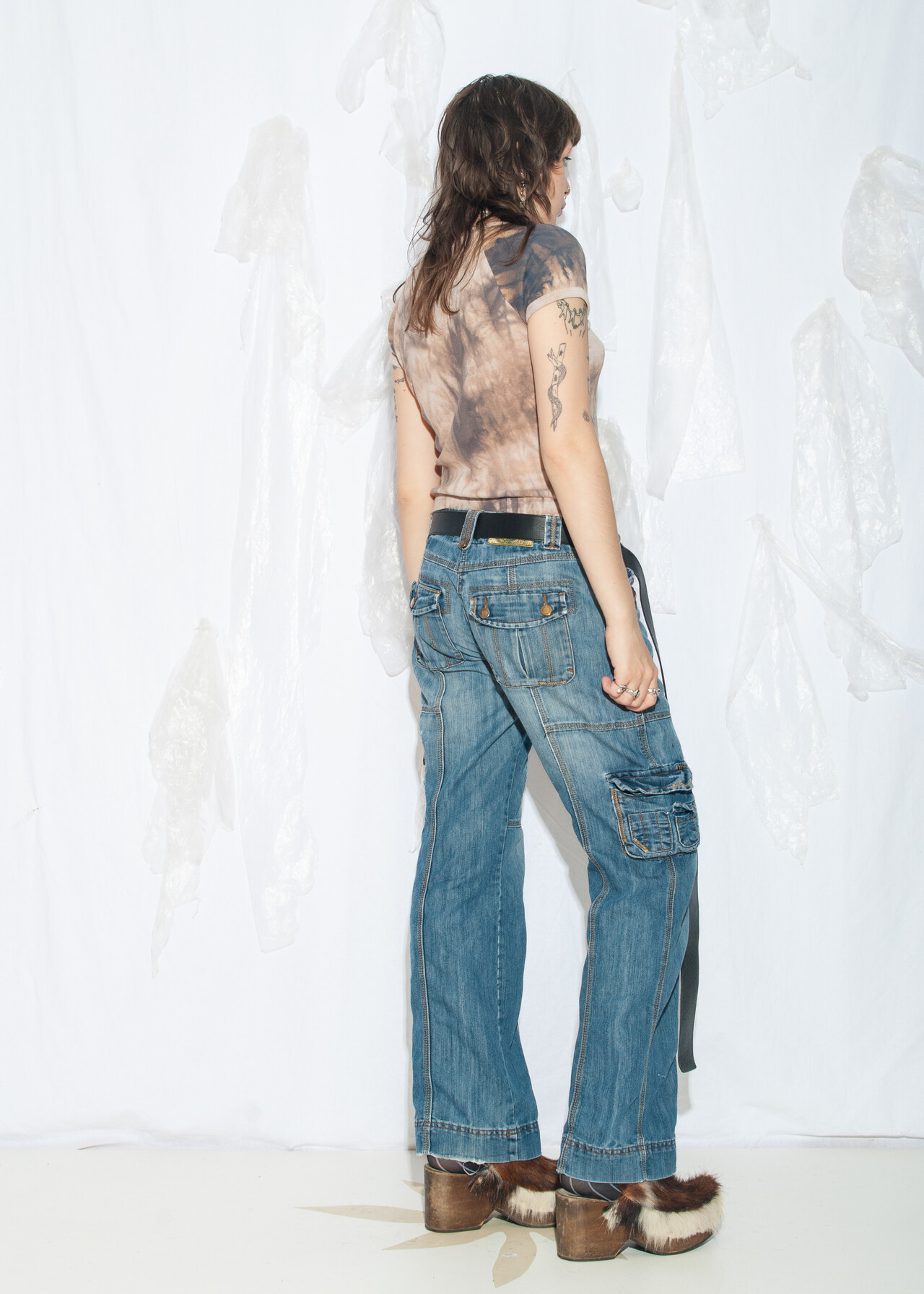 These Y2K vintage cargo jeans are a low-rise, flare masterpiece that will have you strutting like it’s 2003 and you’re the star of your very own grunge fashion show.