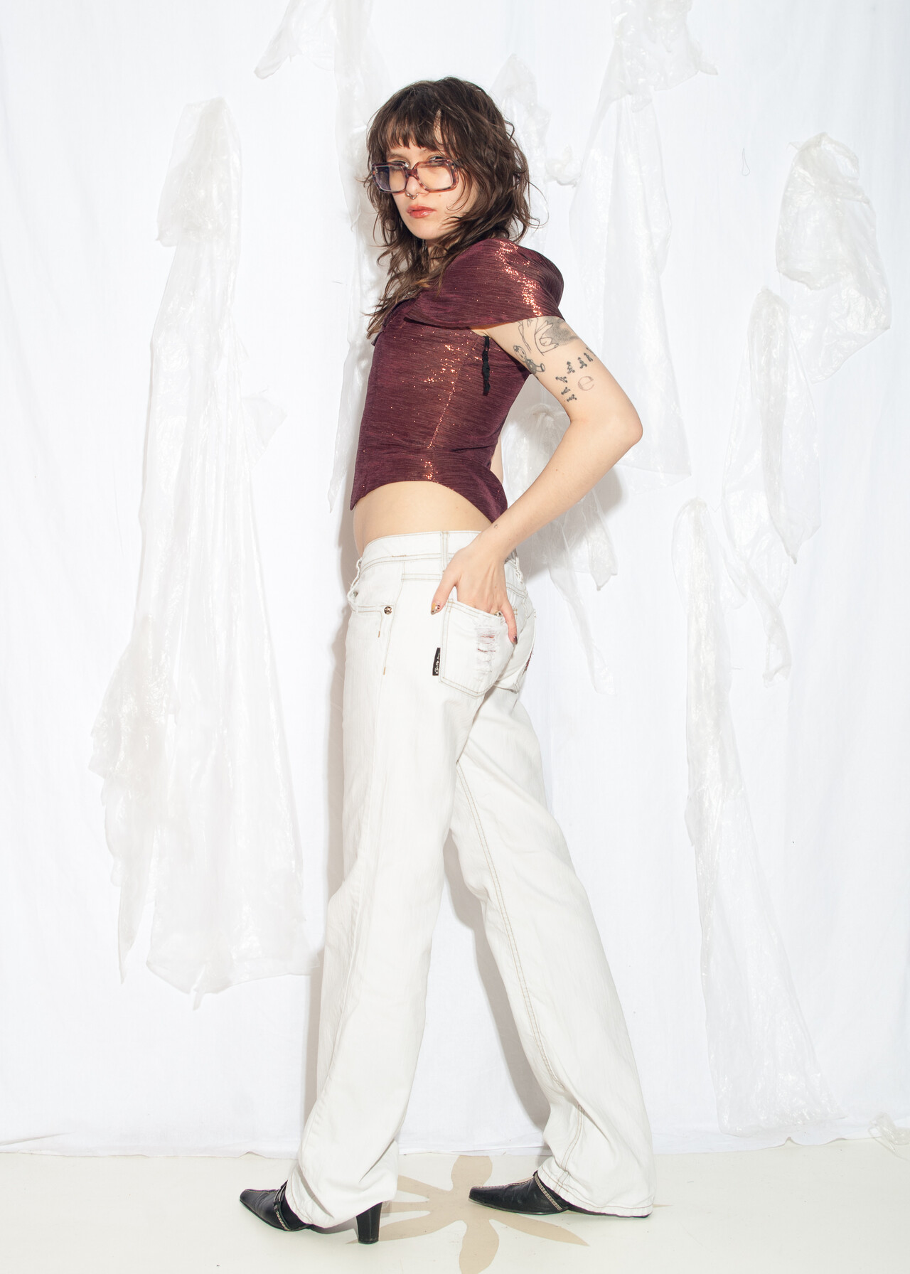 Be the first to review “Vintage Y2K Low Rise Flare Jeans in White” Cancel reply