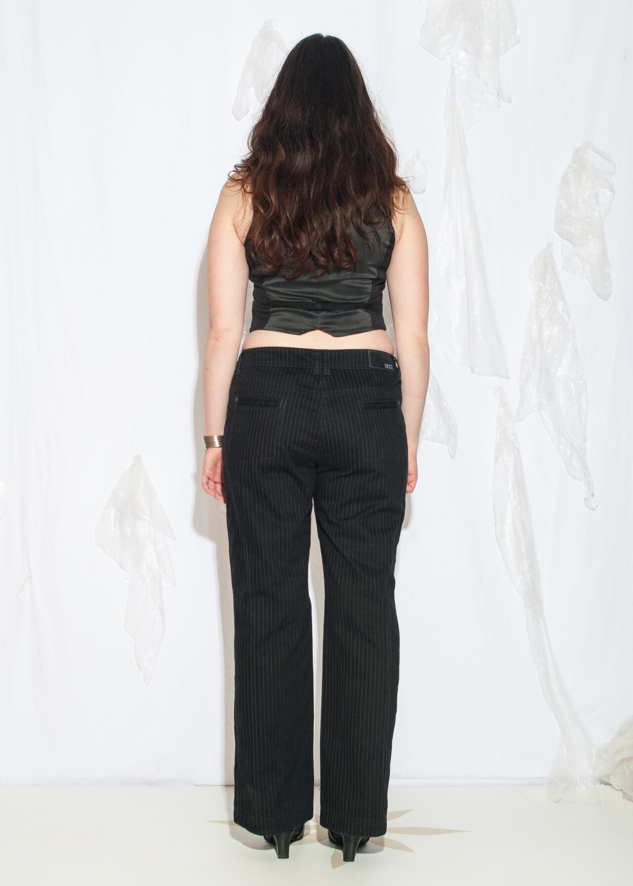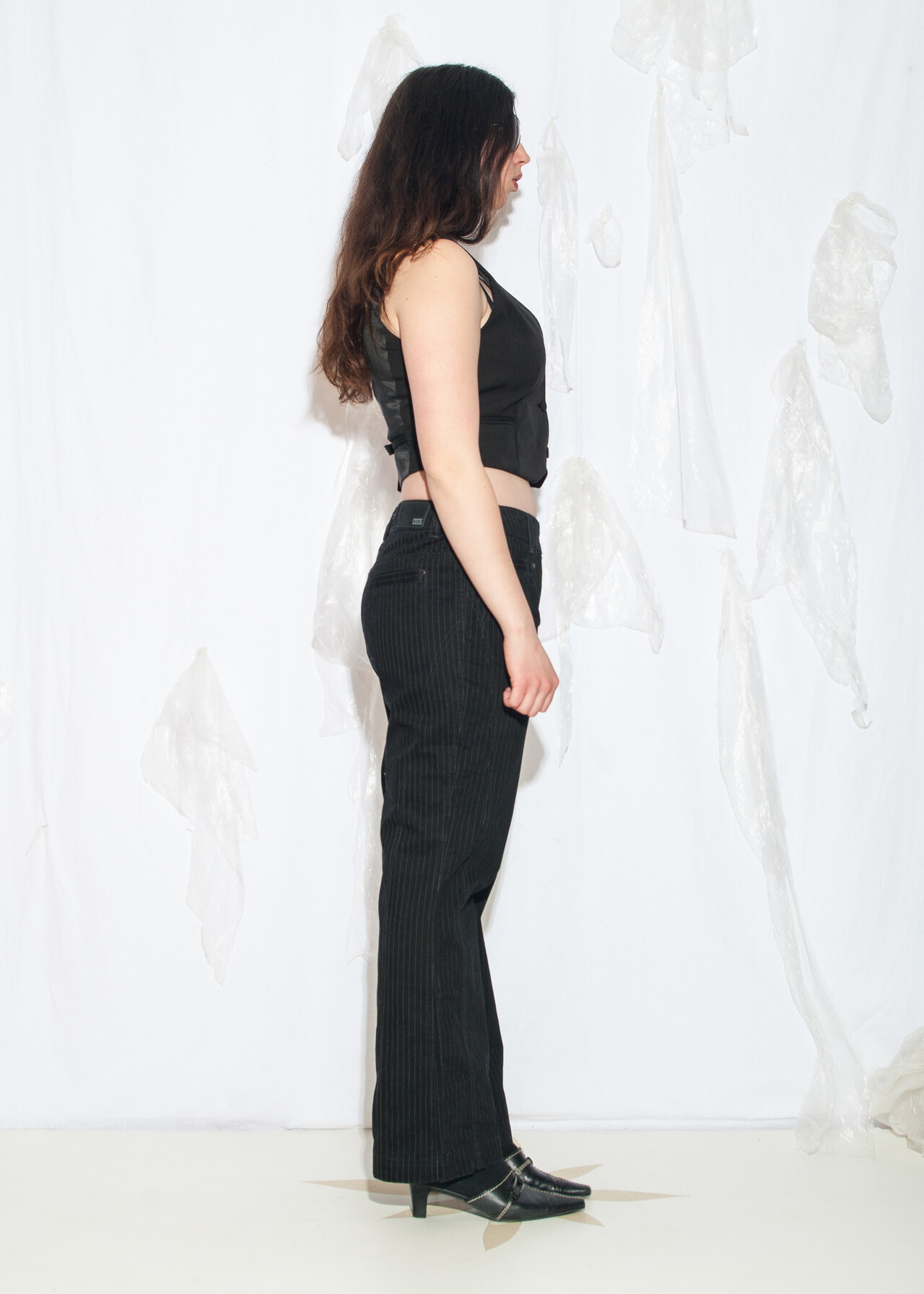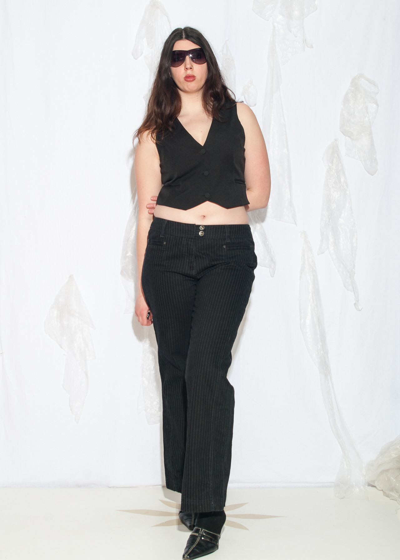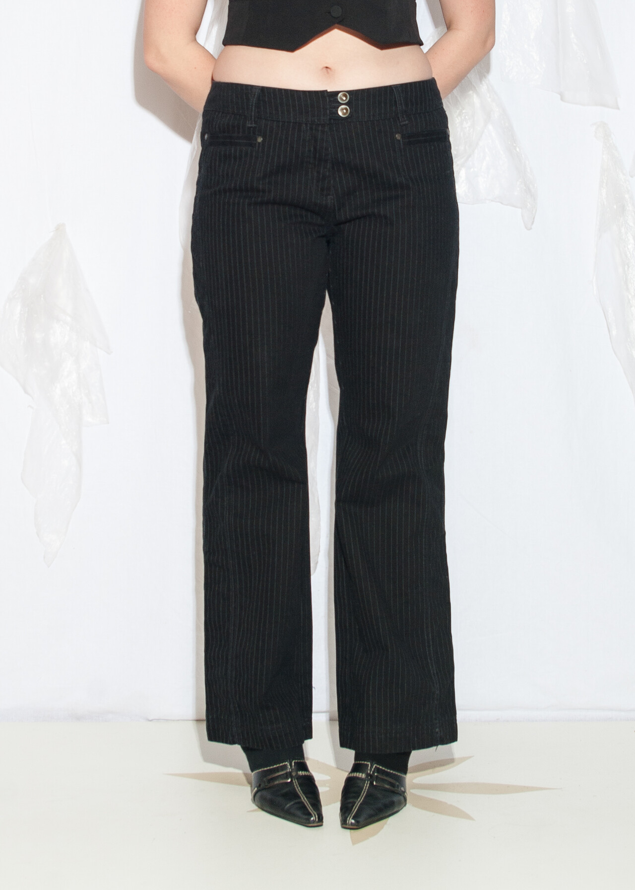Tags: 2000s style fashion, flare jeans, low rise waist, maffia aesthetic, office siren, officecore aesthetic, pinstriped pants, whimsigoth, y2k vintage clothing