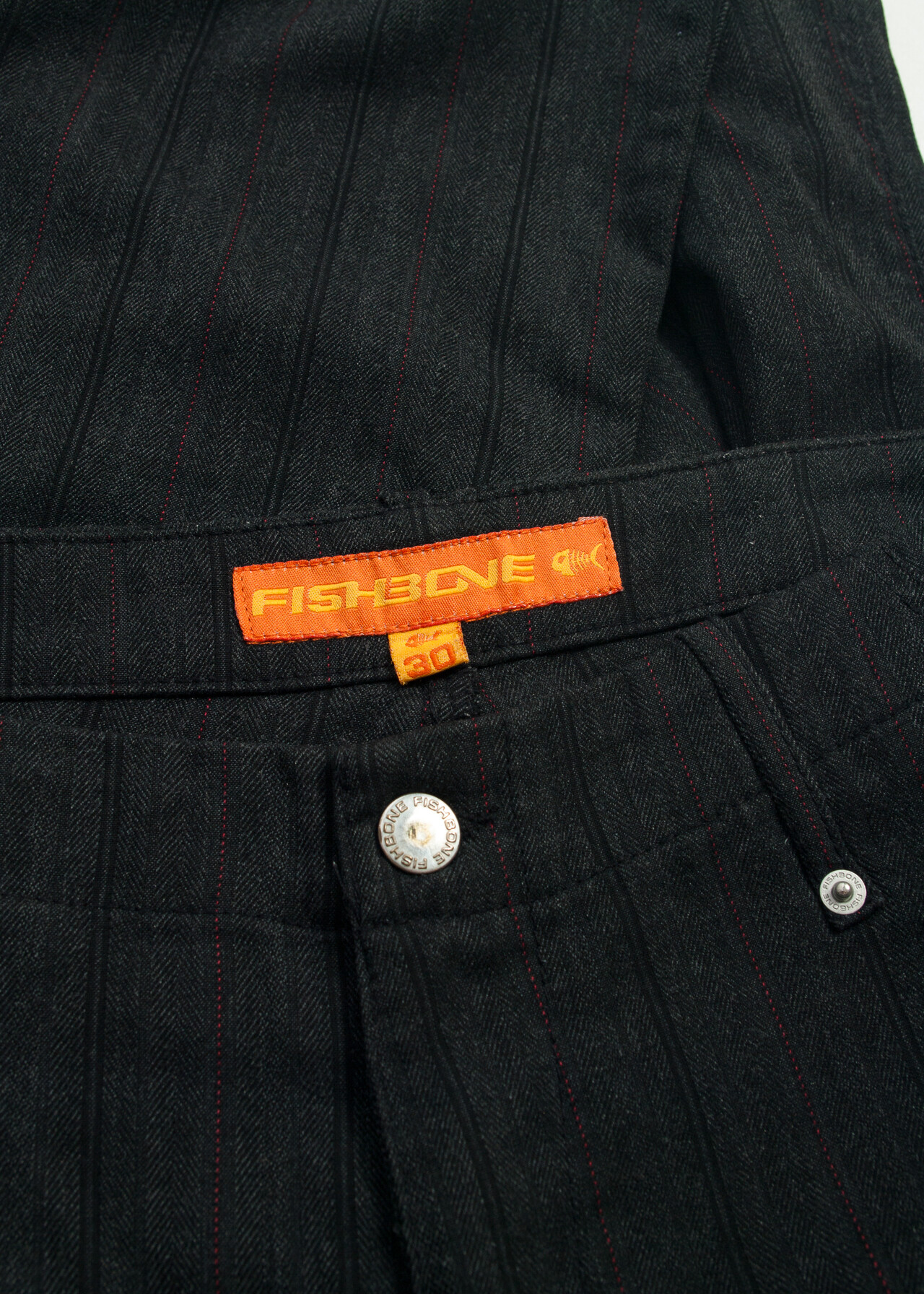 These Y2K vintage pinstriped trousers by Fishbone are your ticket to office siren status with a low rise waist and a flare that screams early 2000s cool. Slip into these wide-leg wonders and prepare to conquer the boardroom like it’s your own personal runway.