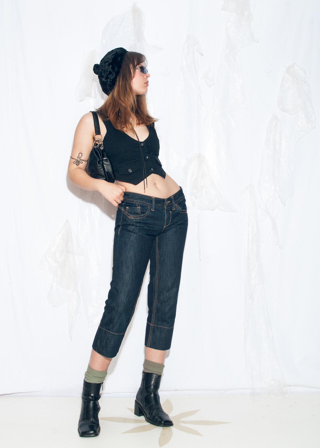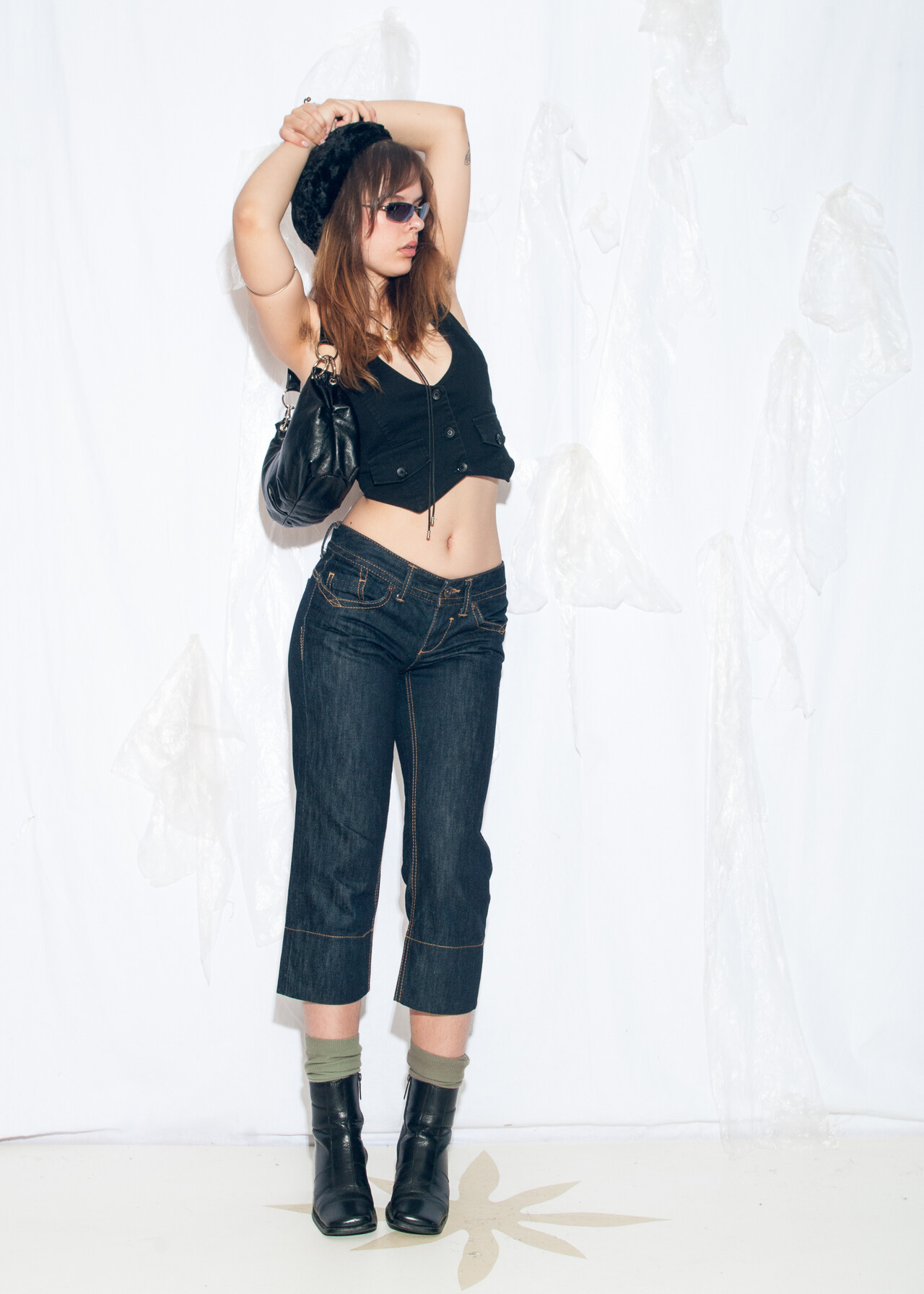Tags: 2000s style fashion, low rise capri jeans, Tommy Hilfiger jeans, y2k vintage clothing
