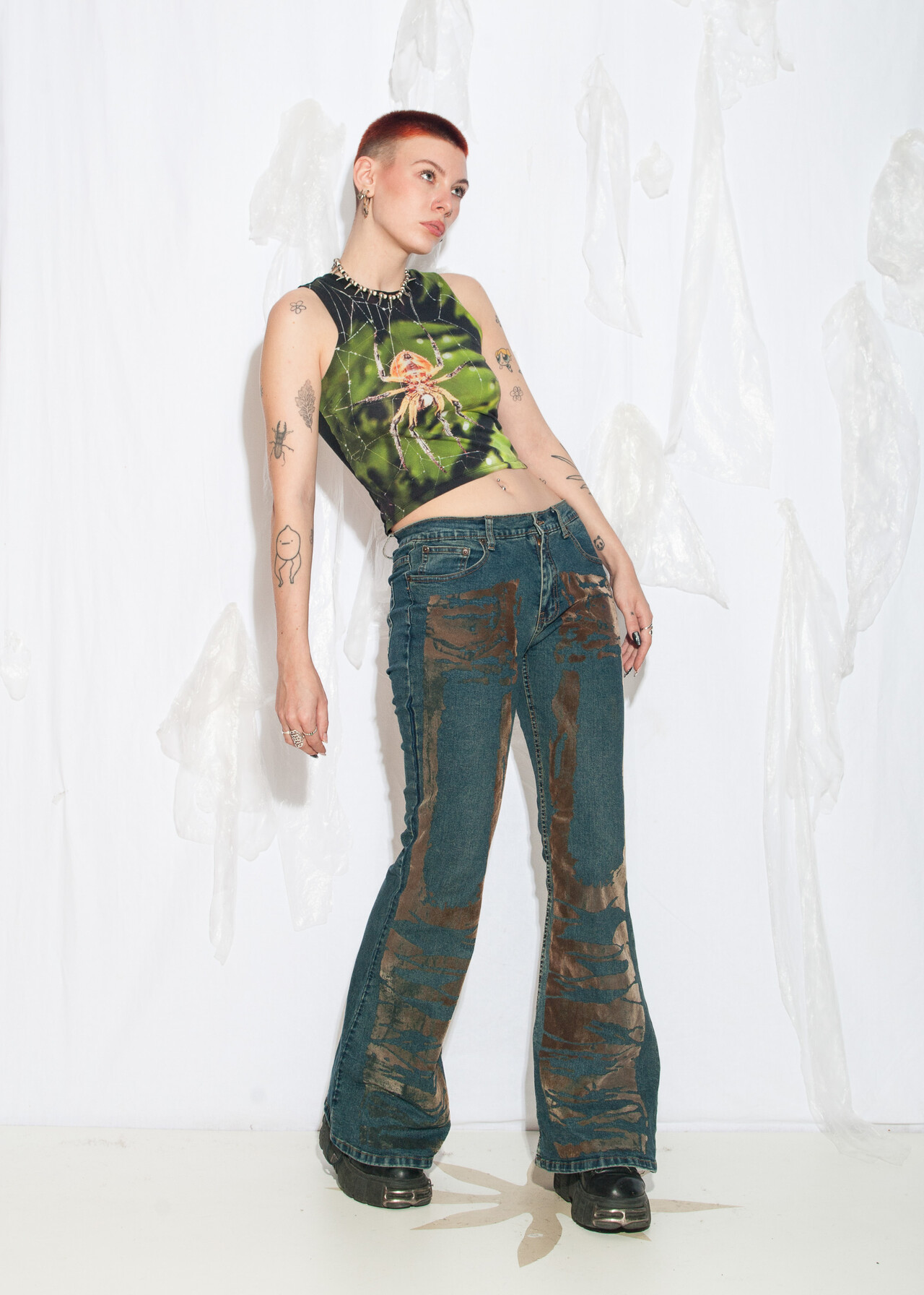 These Y2K vintage jeans from Crazy World are like slipping into a pair of stretchy nostalgia that hugs you tighter than your old MySpace profile.