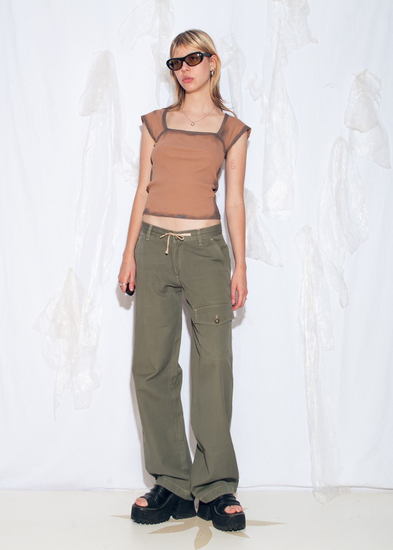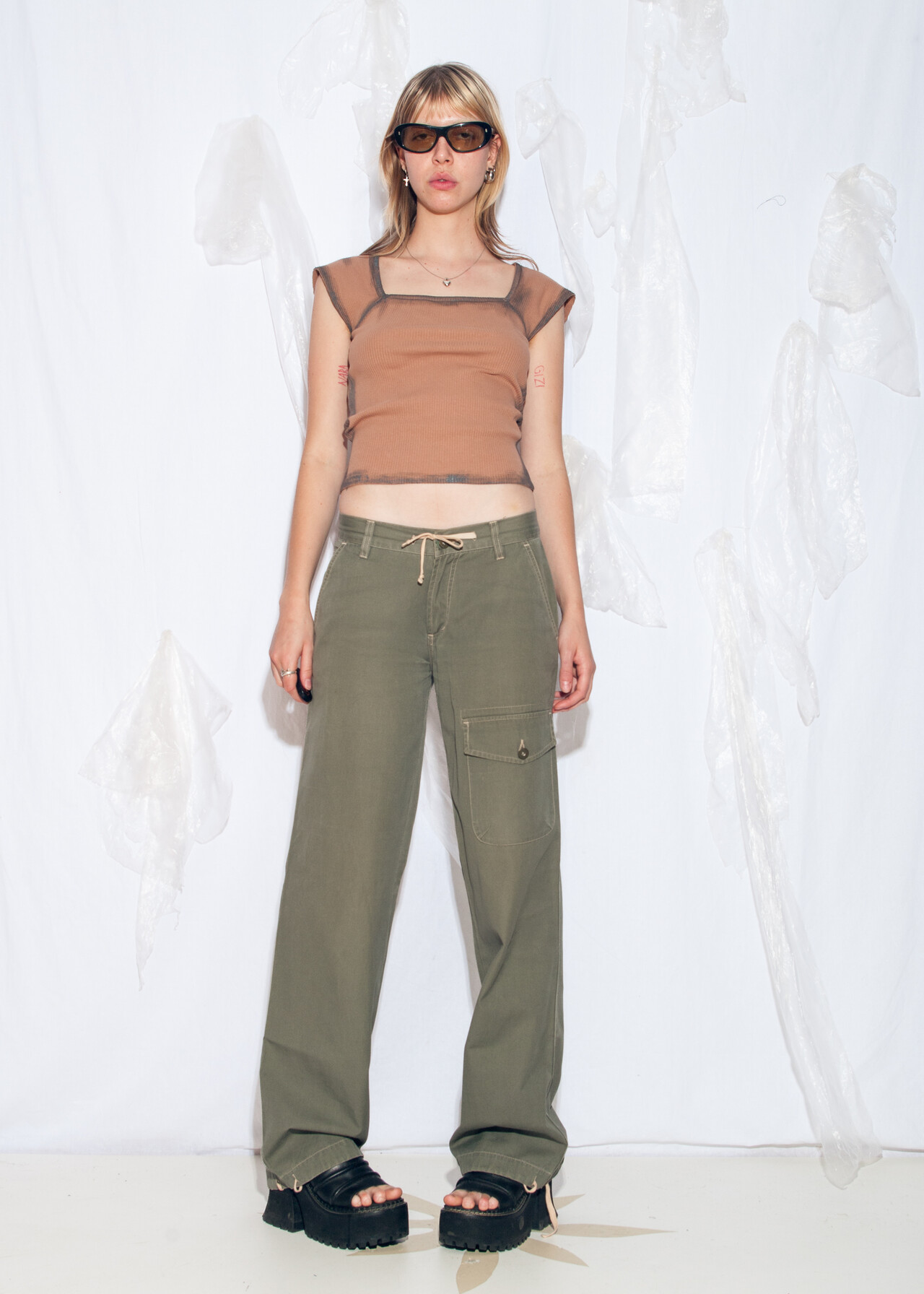 Tags: 2000s style clothing, cargo pants, khaki jeans, low rise flares, wide leg trousers, y2k grunge outfit, y2k vintage fashion