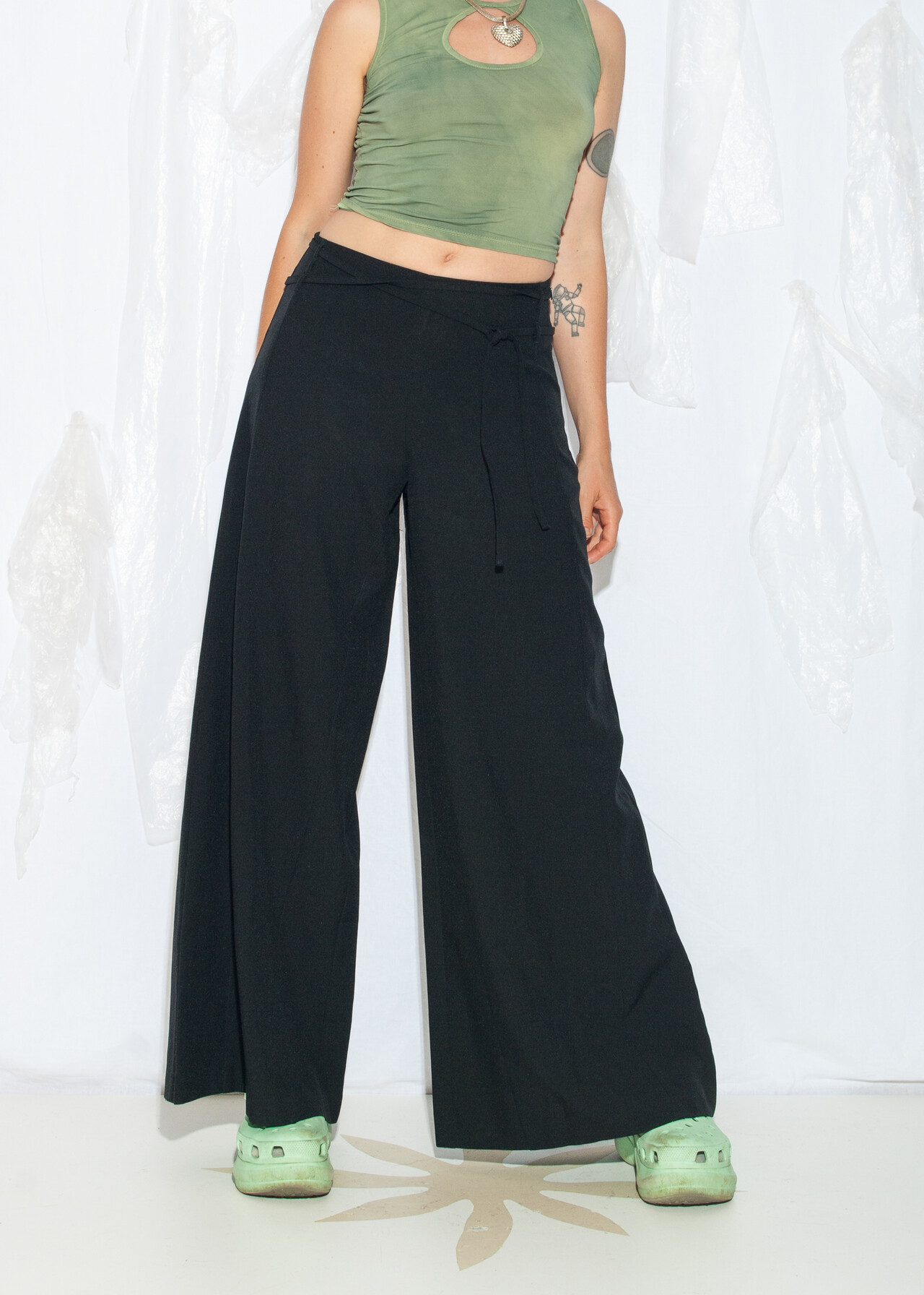 Vintage wide-leg trousers 90s tie front cropped blue pants