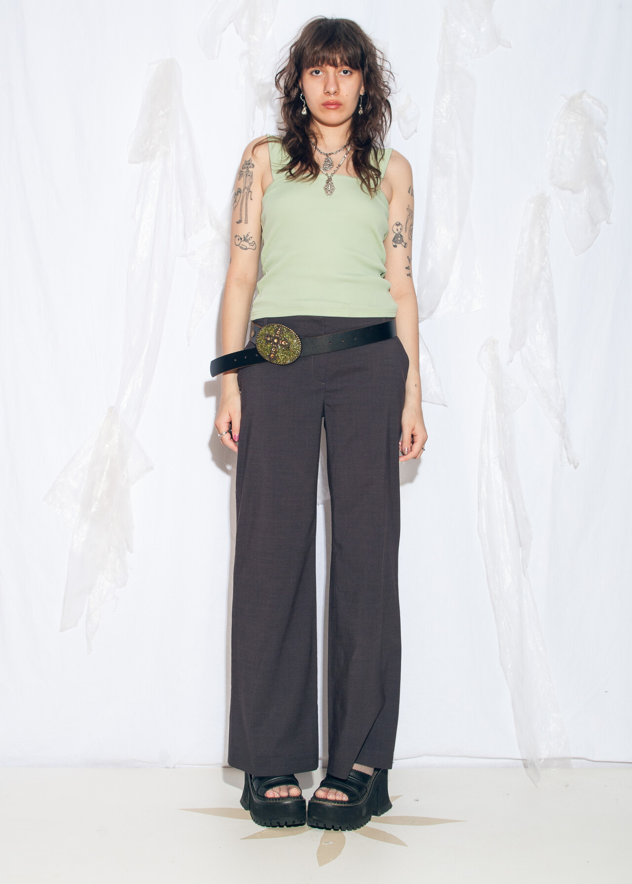 Be the first to review “Vintage Y2K Wide-Leg Trousers in Grey” Cancel reply