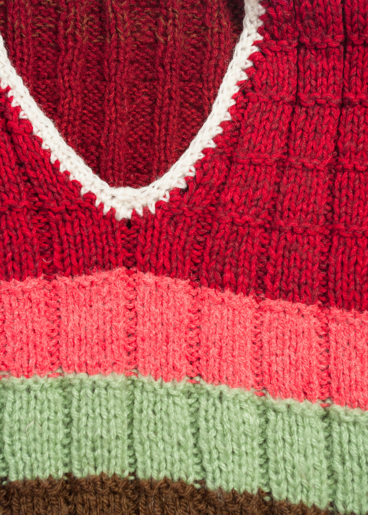 Vintage 80s Handmade Knit Vest in Maroon and Orange