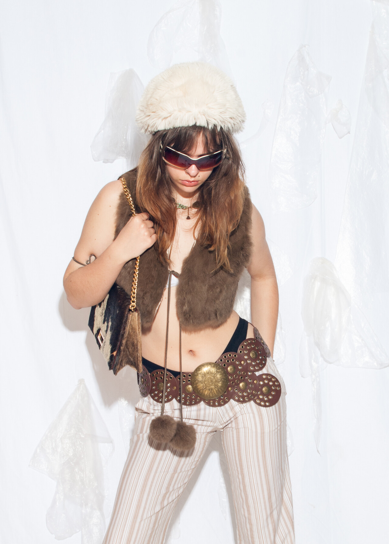 Tags: 2000s style clothing, boho top, Penny Lane waistcoat, real fur vest, y2k vintage fashion