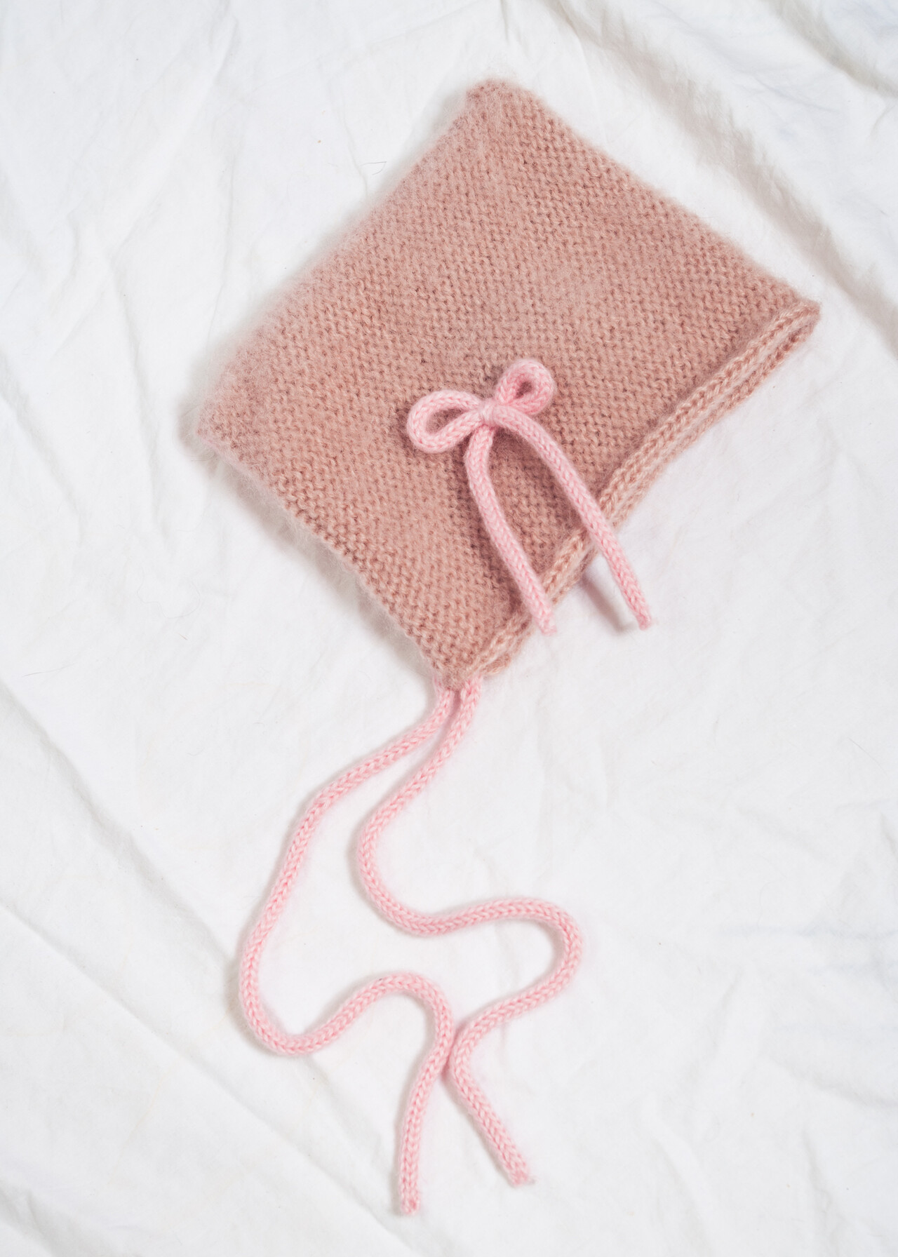 Handmade Baby Bonnet Hood in Pink from Vintage Mohair Yarn