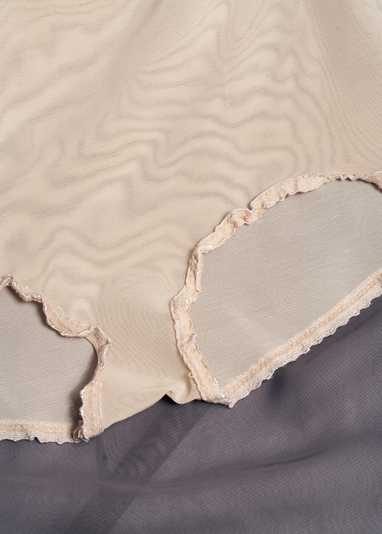 These 60s vintage mesh panties are your ticket to feeling like a beige-clad superhero from the era of flower power and nylon dreams.