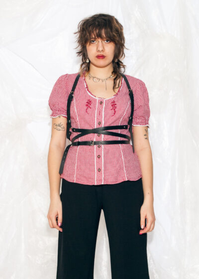 Vintage 90s Blouse in Red and White Cotton Cottagecore