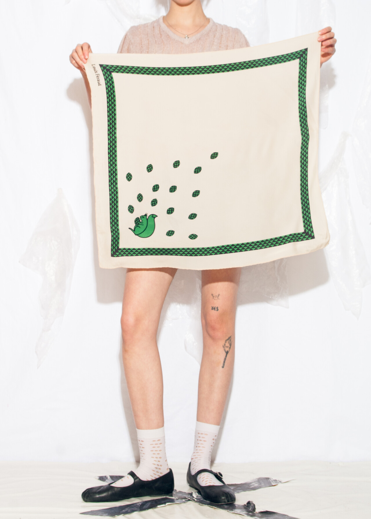 Tags: 60s vintage stlye, designer vintage, Louis Féraud, mod, pure silk scarf, squirrel pattern
