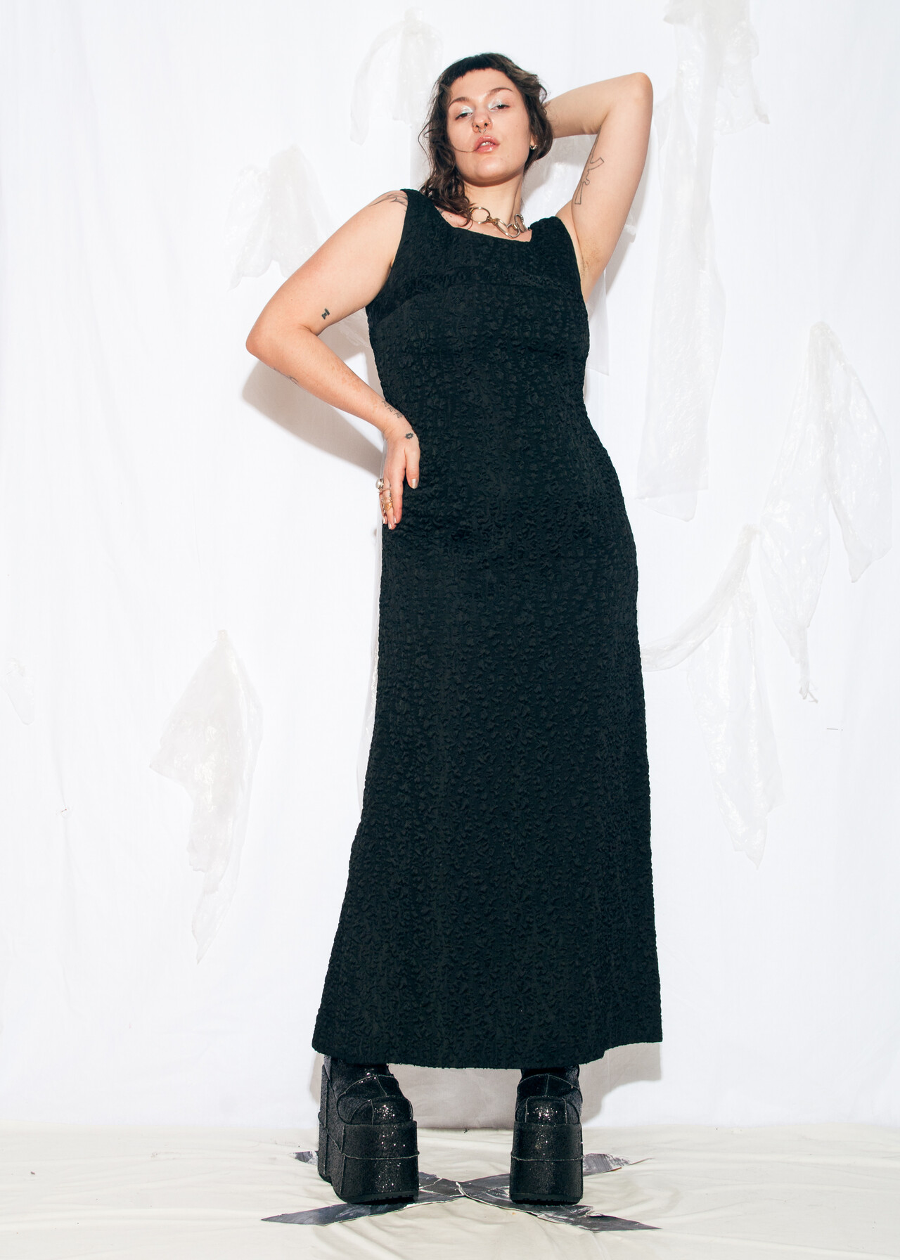 This 60s vintage evening dress is the maxi masterpiece that makes you feel like you’re starring in your own black-and-white movie, minus the dramatic monologues.