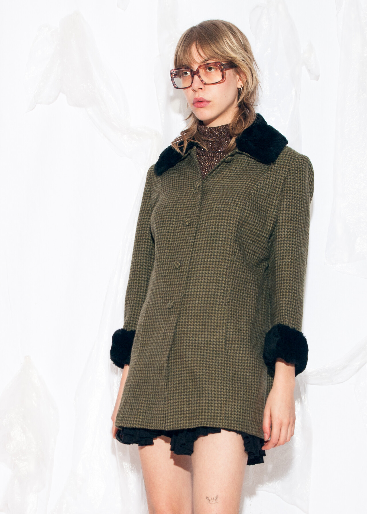 Vintage 60s Wool Blazer Coat in Green Houndstooth