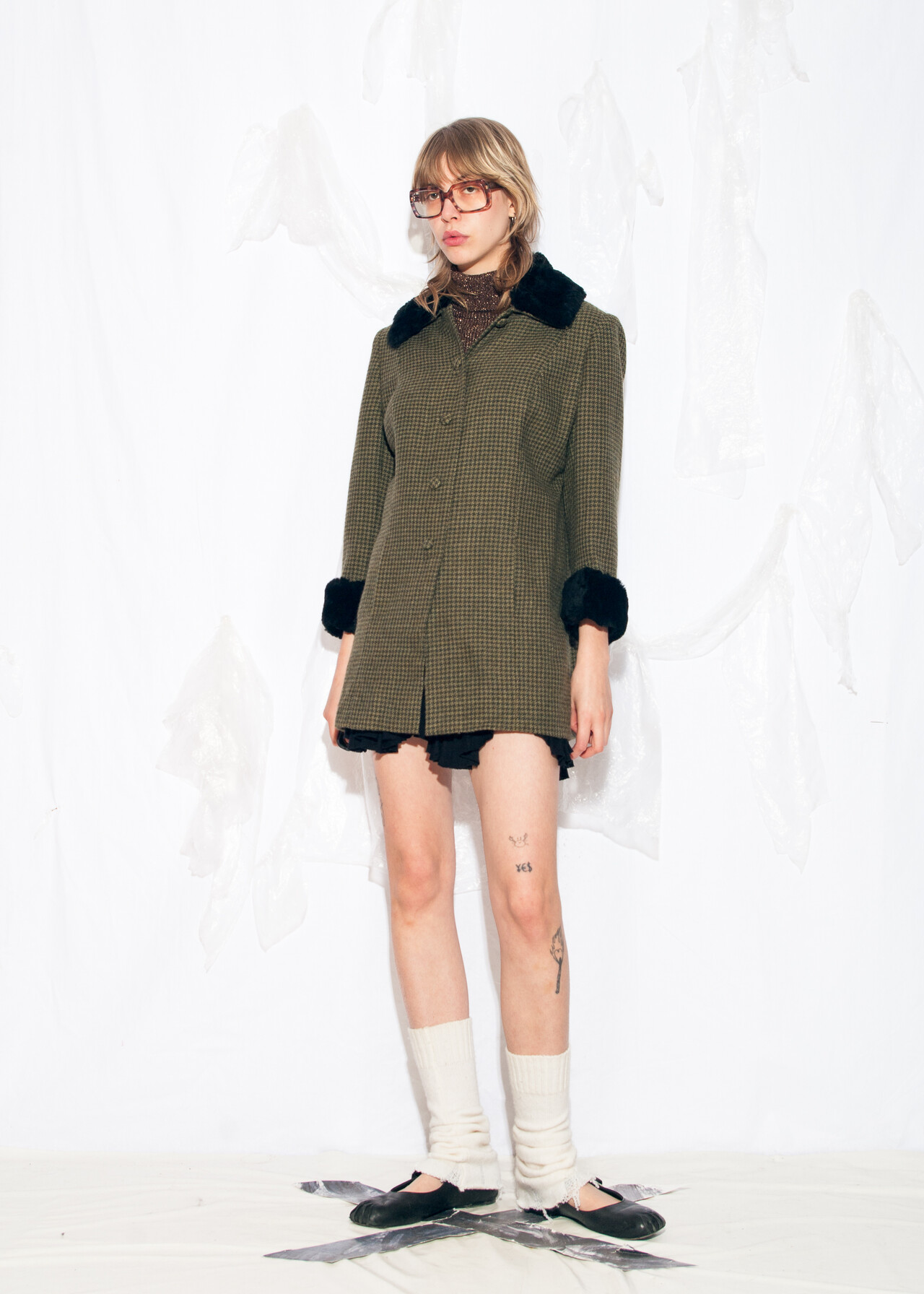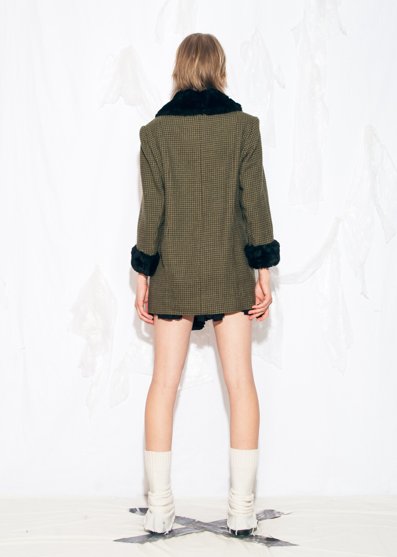 Tags: 60s vintage, blazer jacket, fur collar, preppy style, wool coat