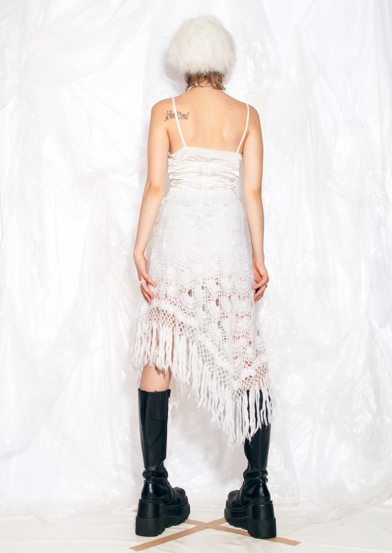 Vintage 70s Crochet Lace Scarf Skirt in White