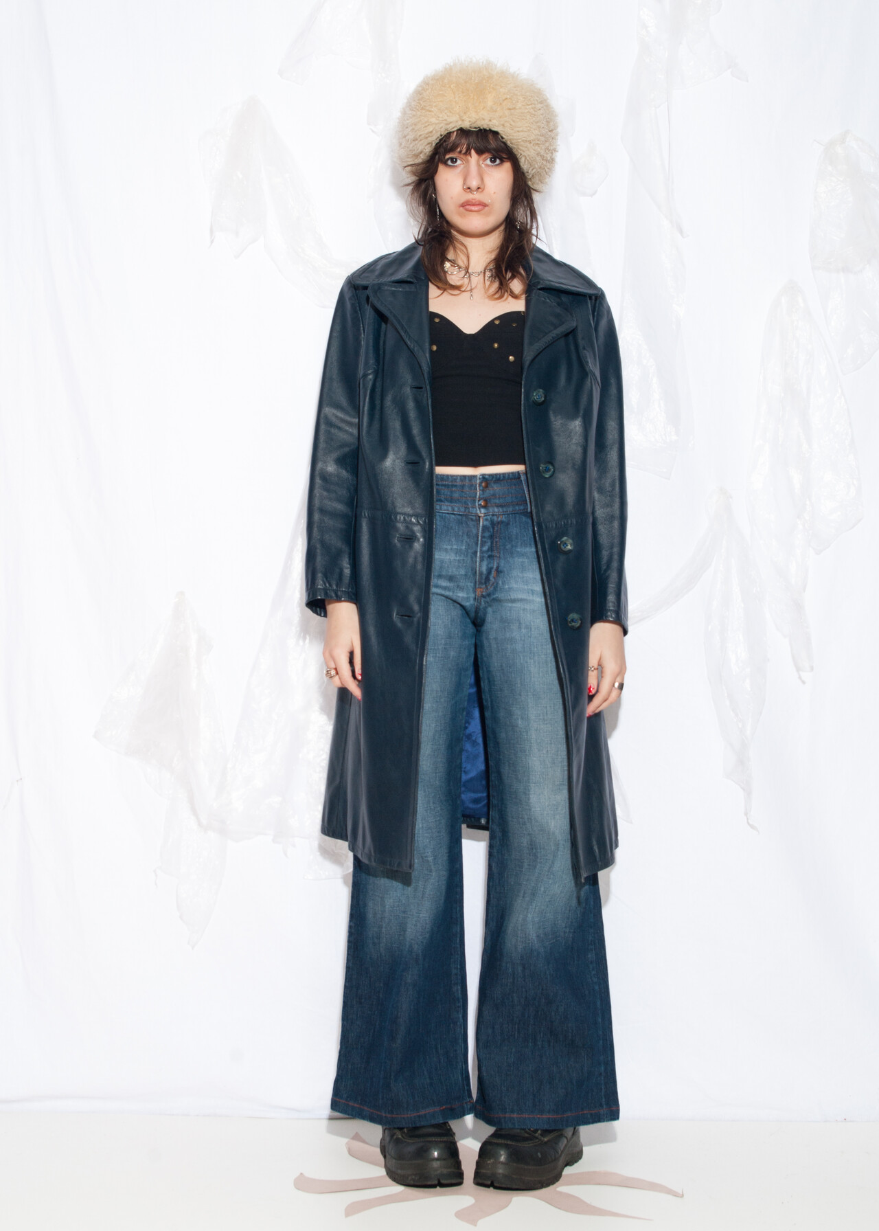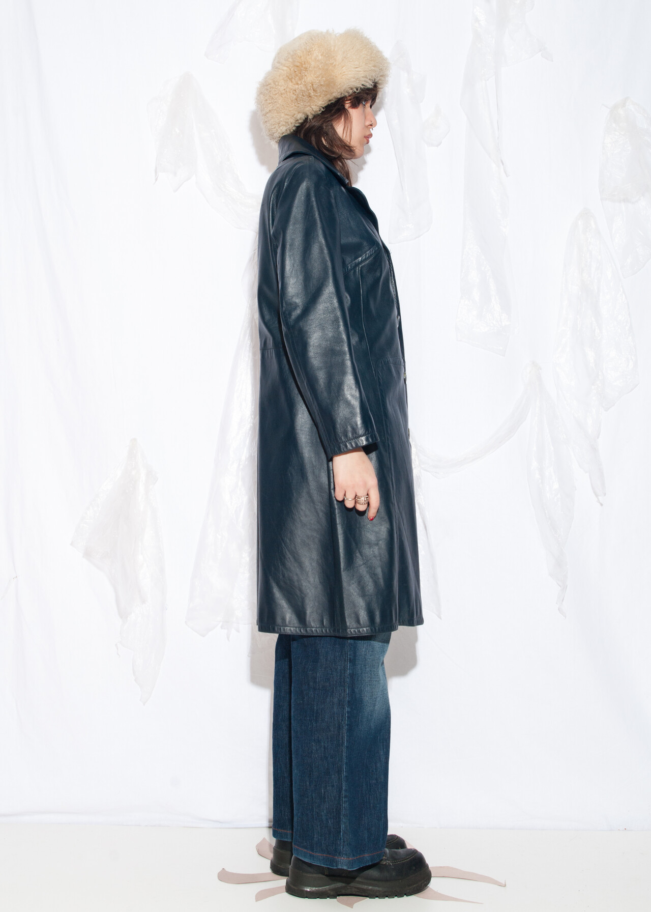 This 70s vintage coat is the blue leather masterpiece that’ll have you strutting around like you’re in a whimsigoth detective show.