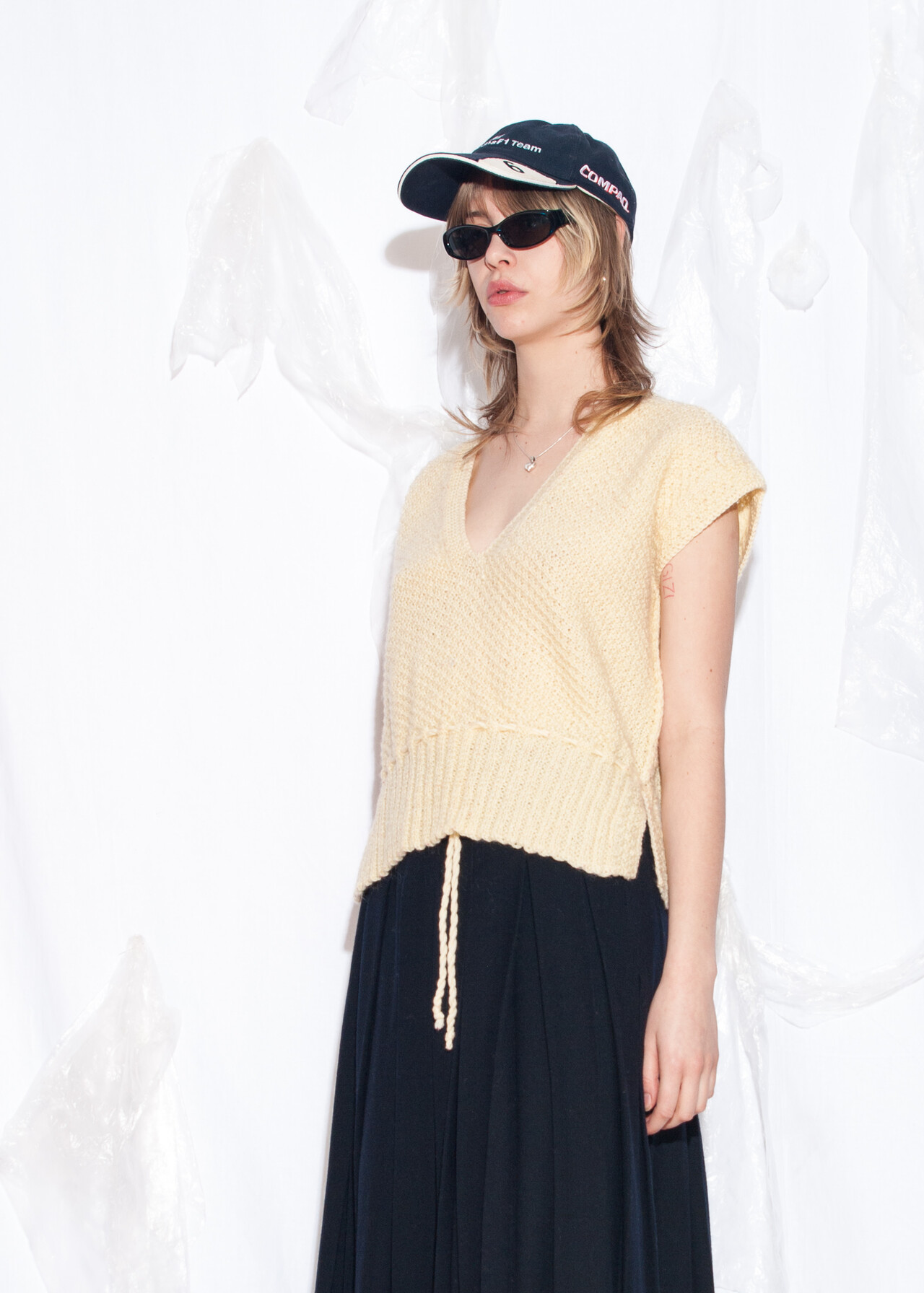 Vintage 70s Oversized Hand Knitted Vest in Yellow