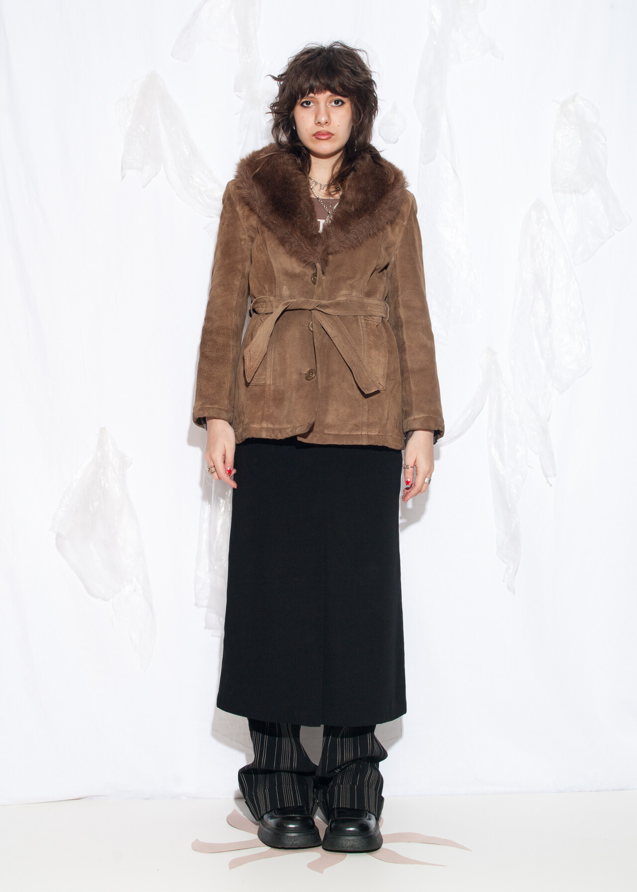 This 70s vintage real fur and suede leather coat by Kara Trutnov is the ultimate winter sidekick, ready to keep you warm while channeling your inner Penny Lane.