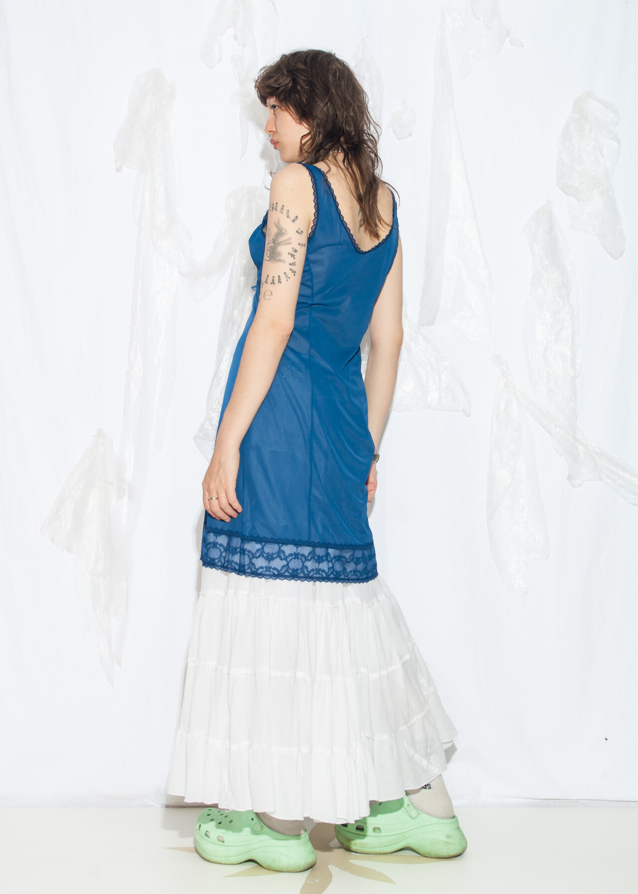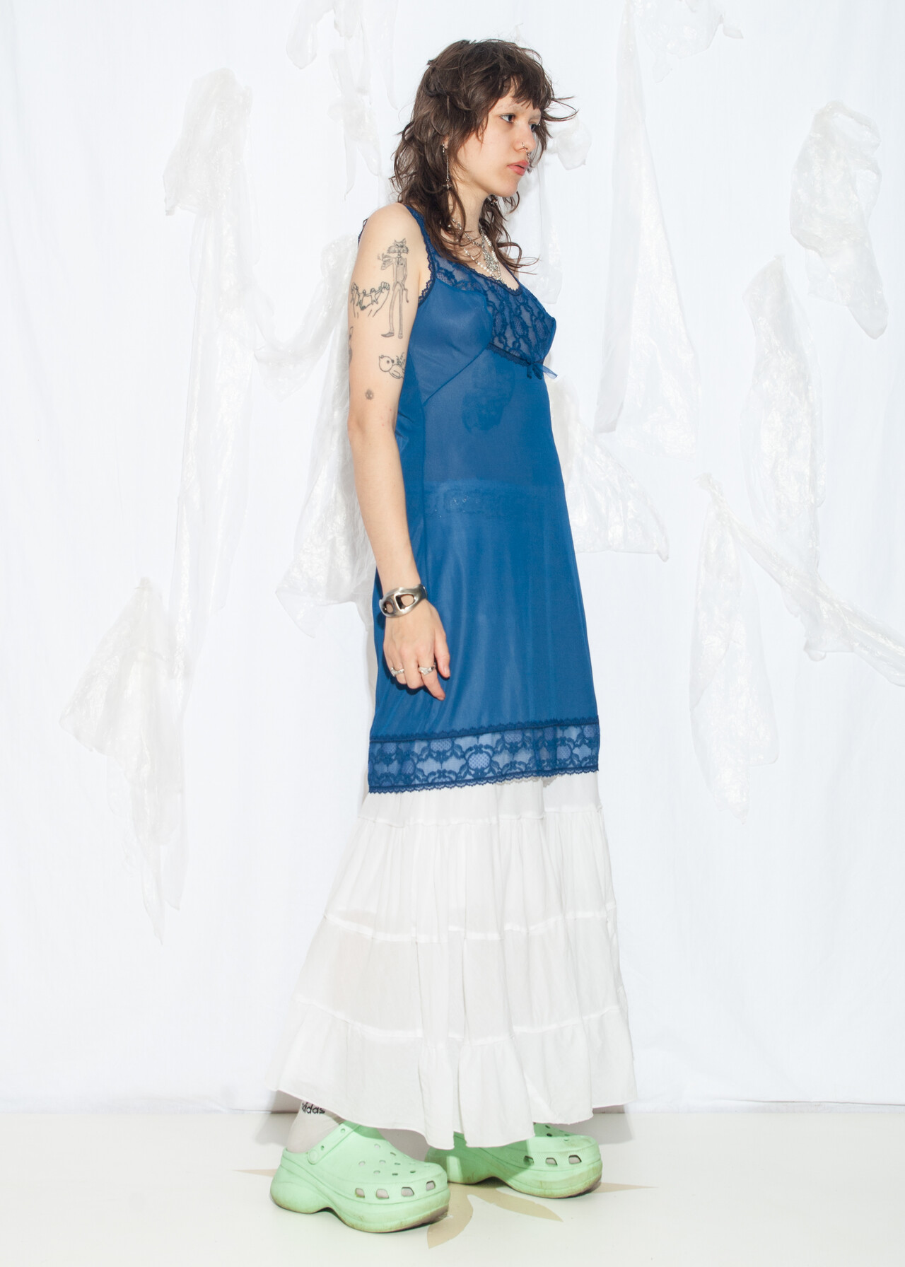 Vintage 70s Sheer Lace Slip Dress in Blue
