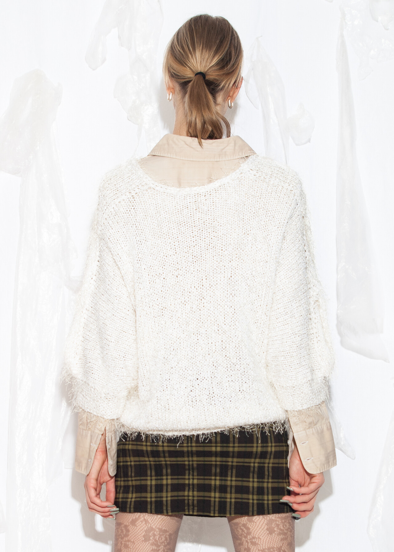 Tags: 80s vintage fashion, fluffy jumper, furry white sweater, knit pullover, oversized, slouchy top, y2k style clothing