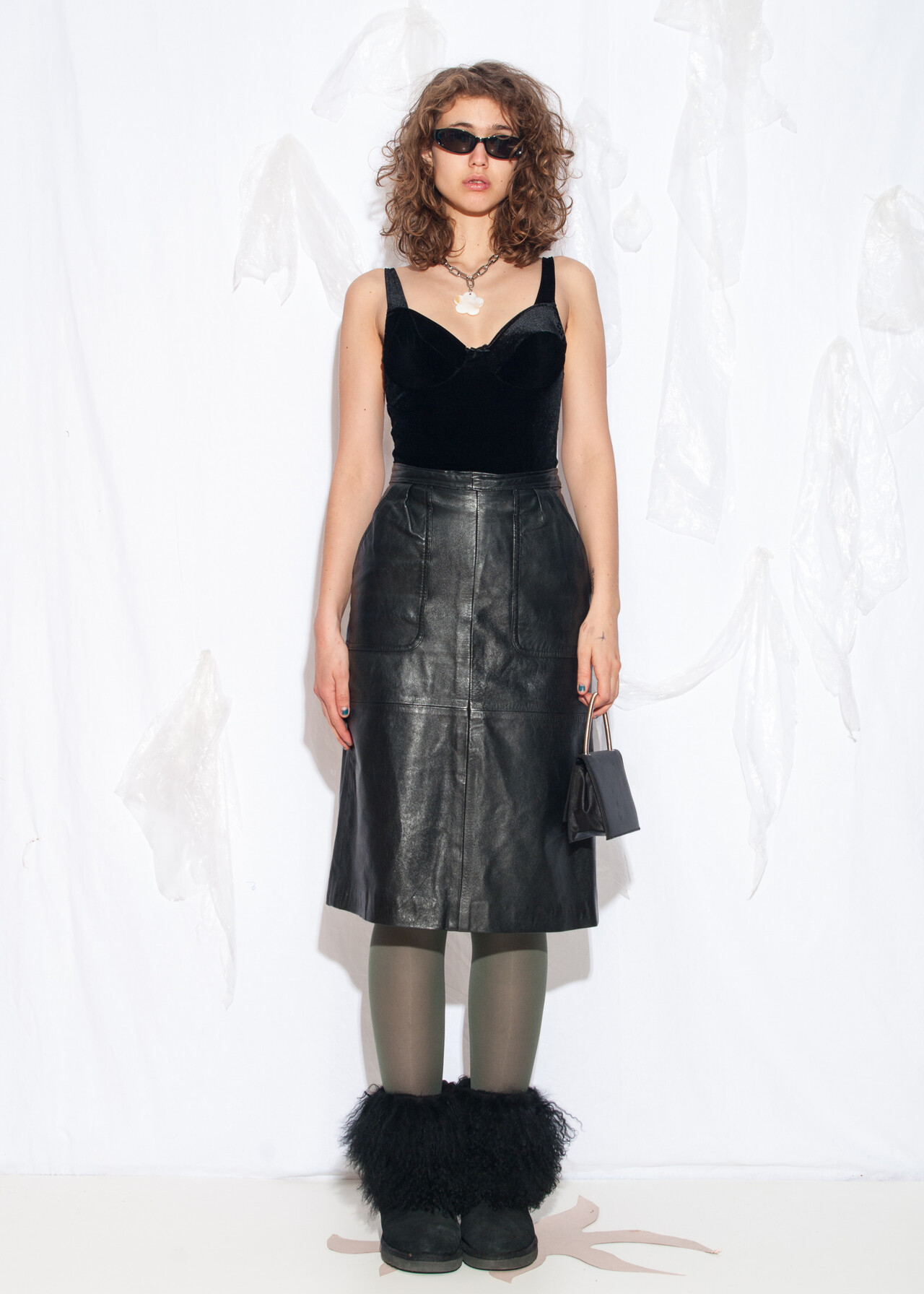 Be the first to review “Vintage 80s Leather Midi Skirt in Black” Cancel reply