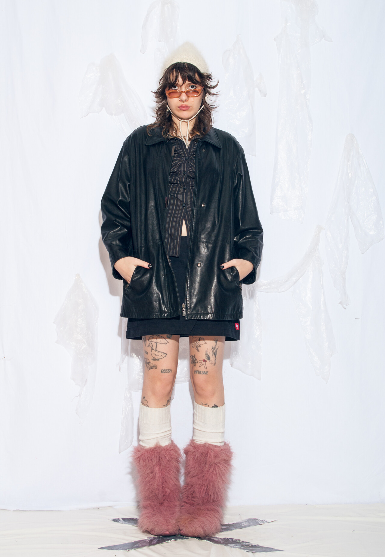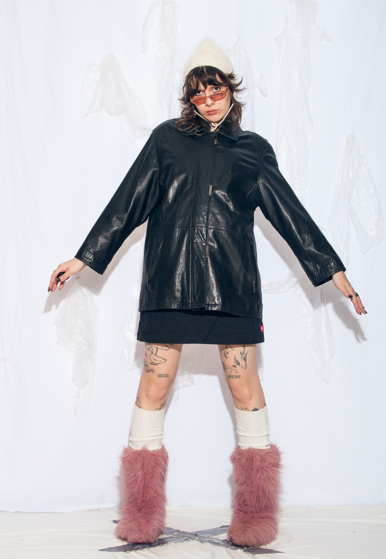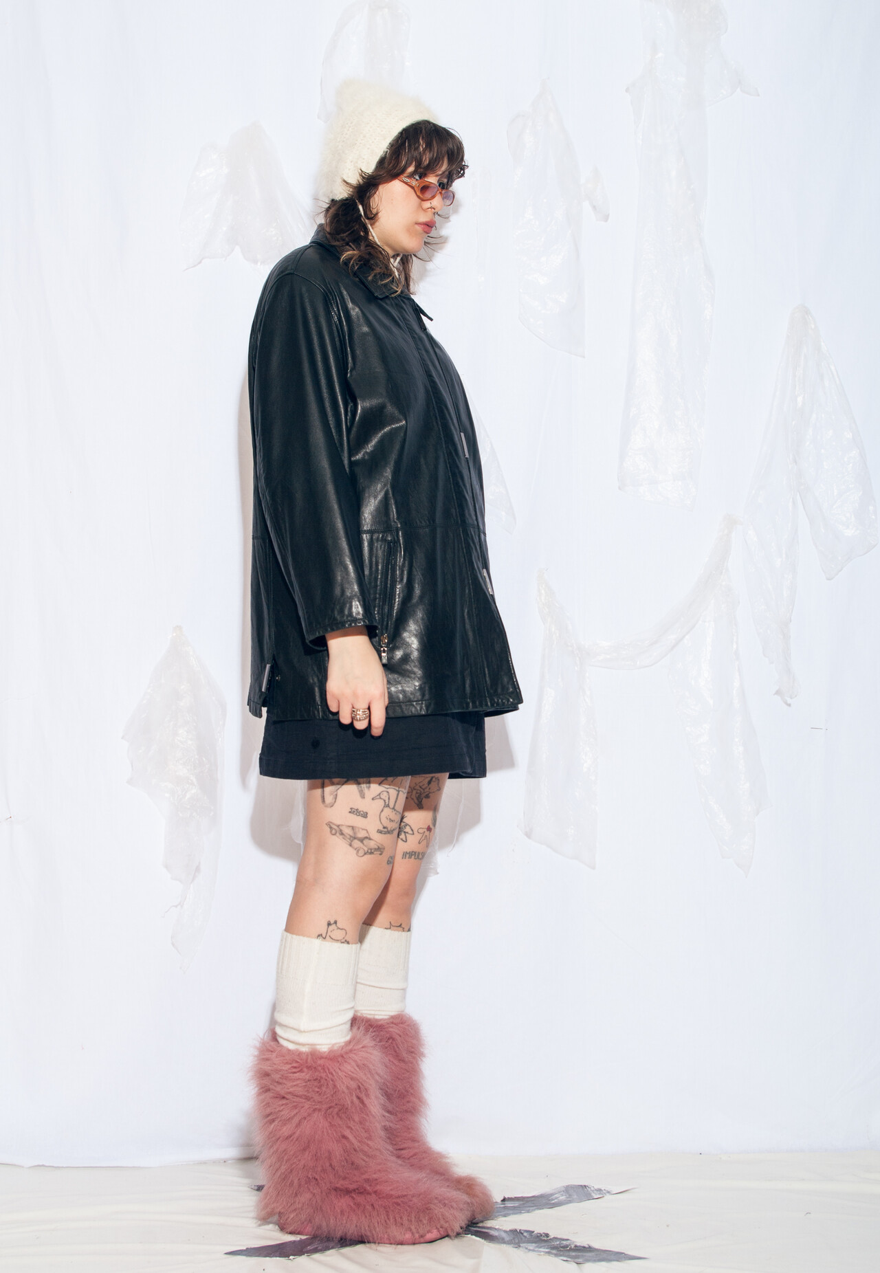 Tags: 2000s vintage style, boyfriend fit, leather coat, oversized jacket