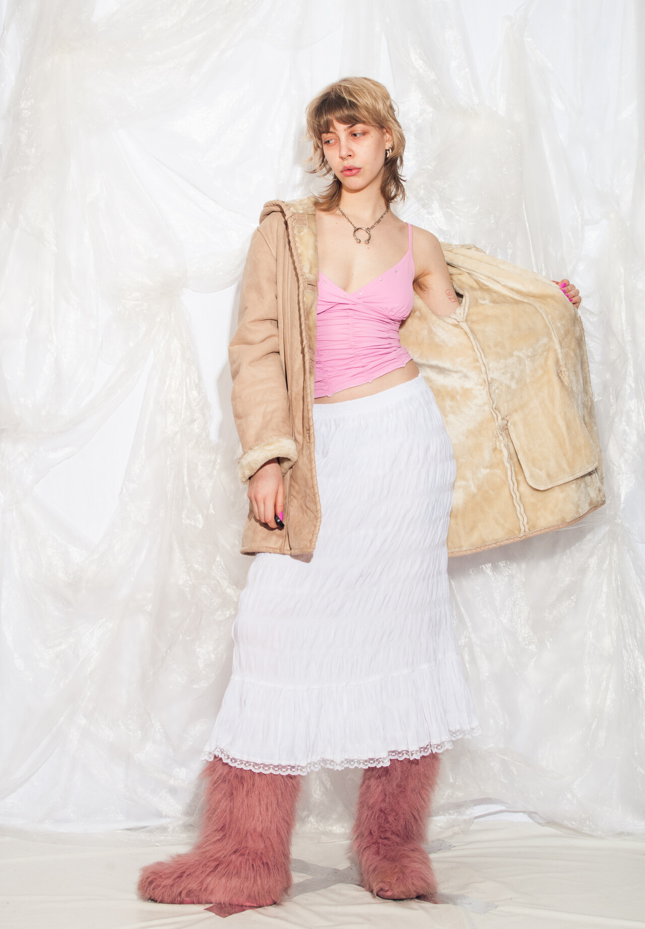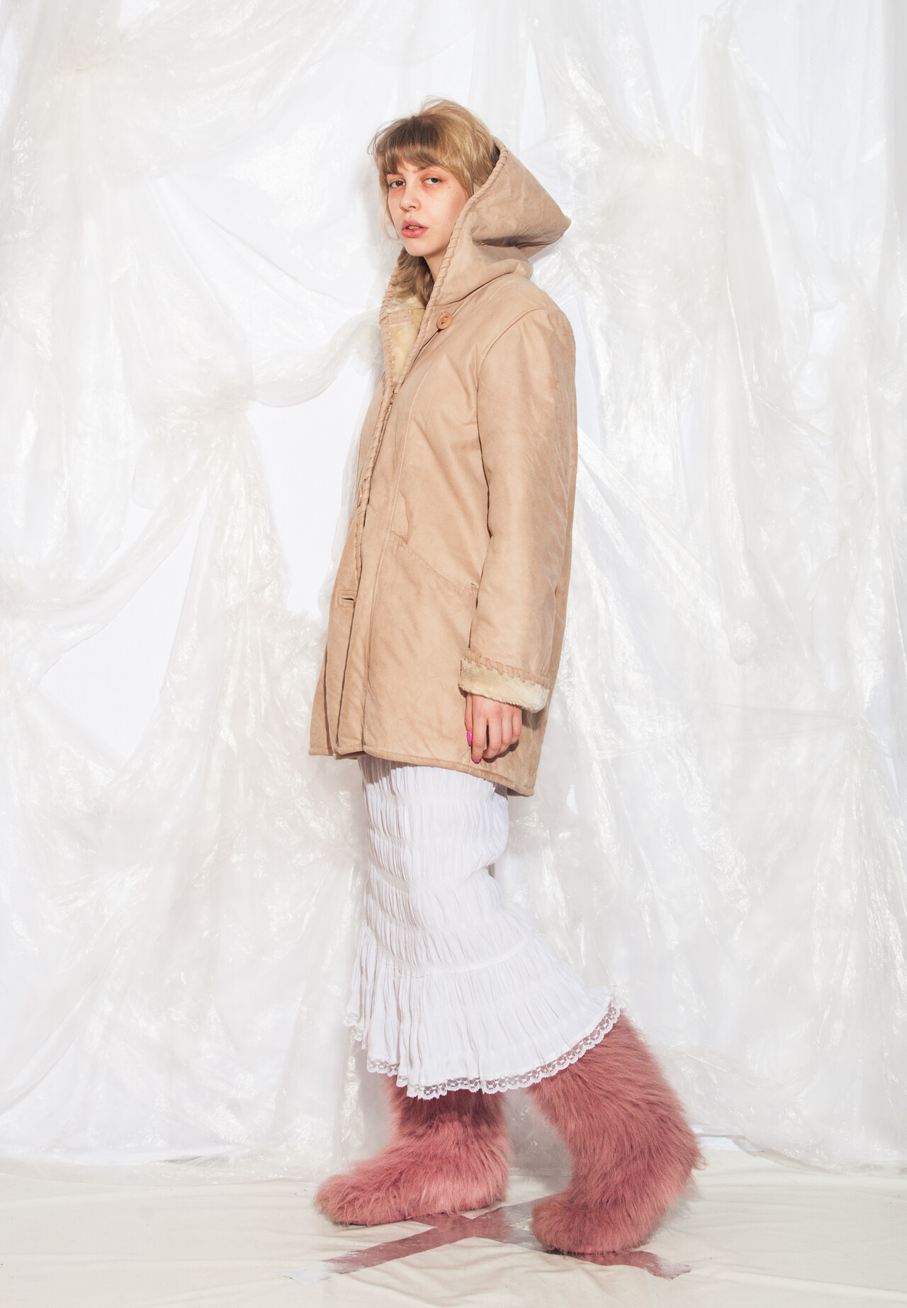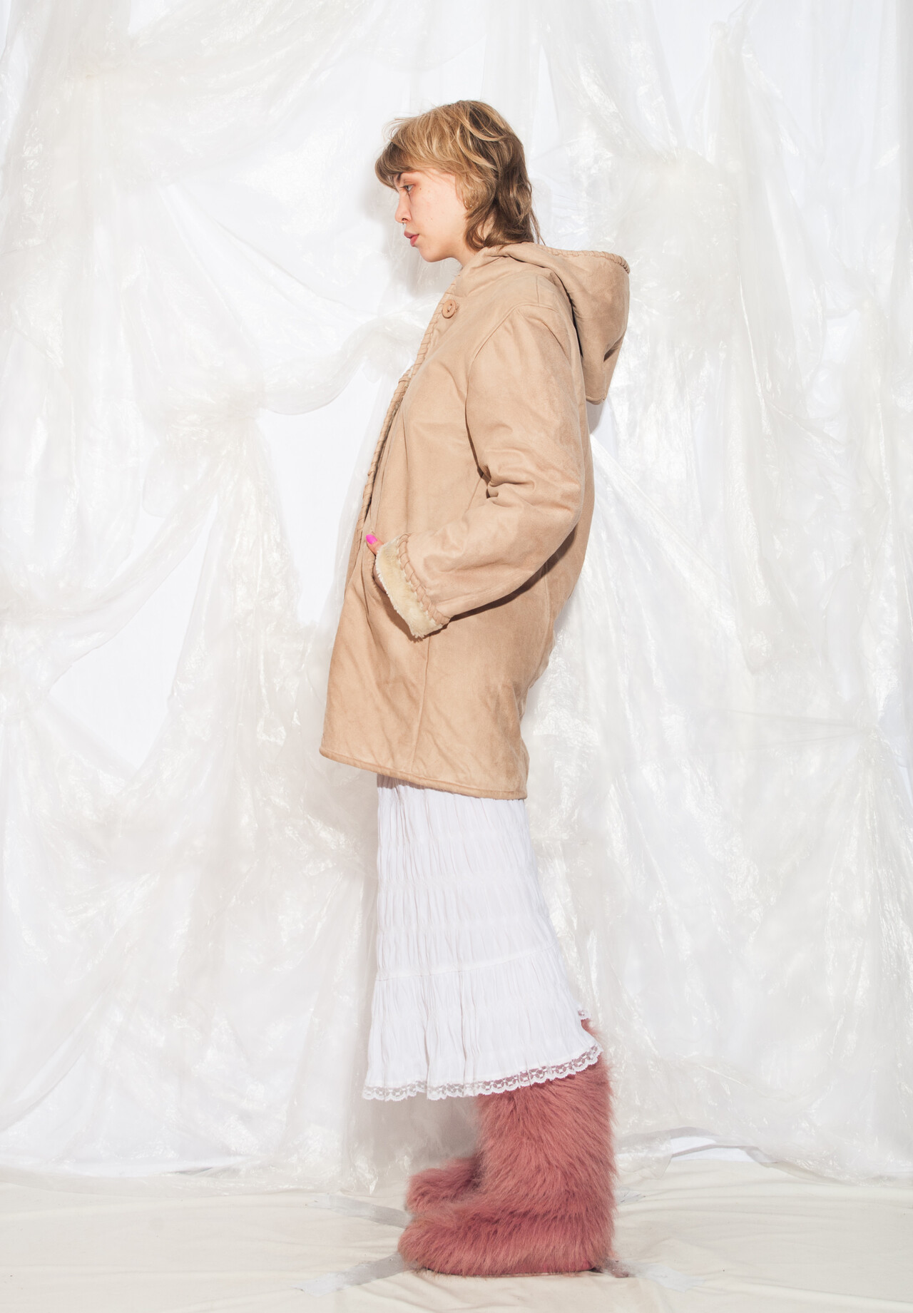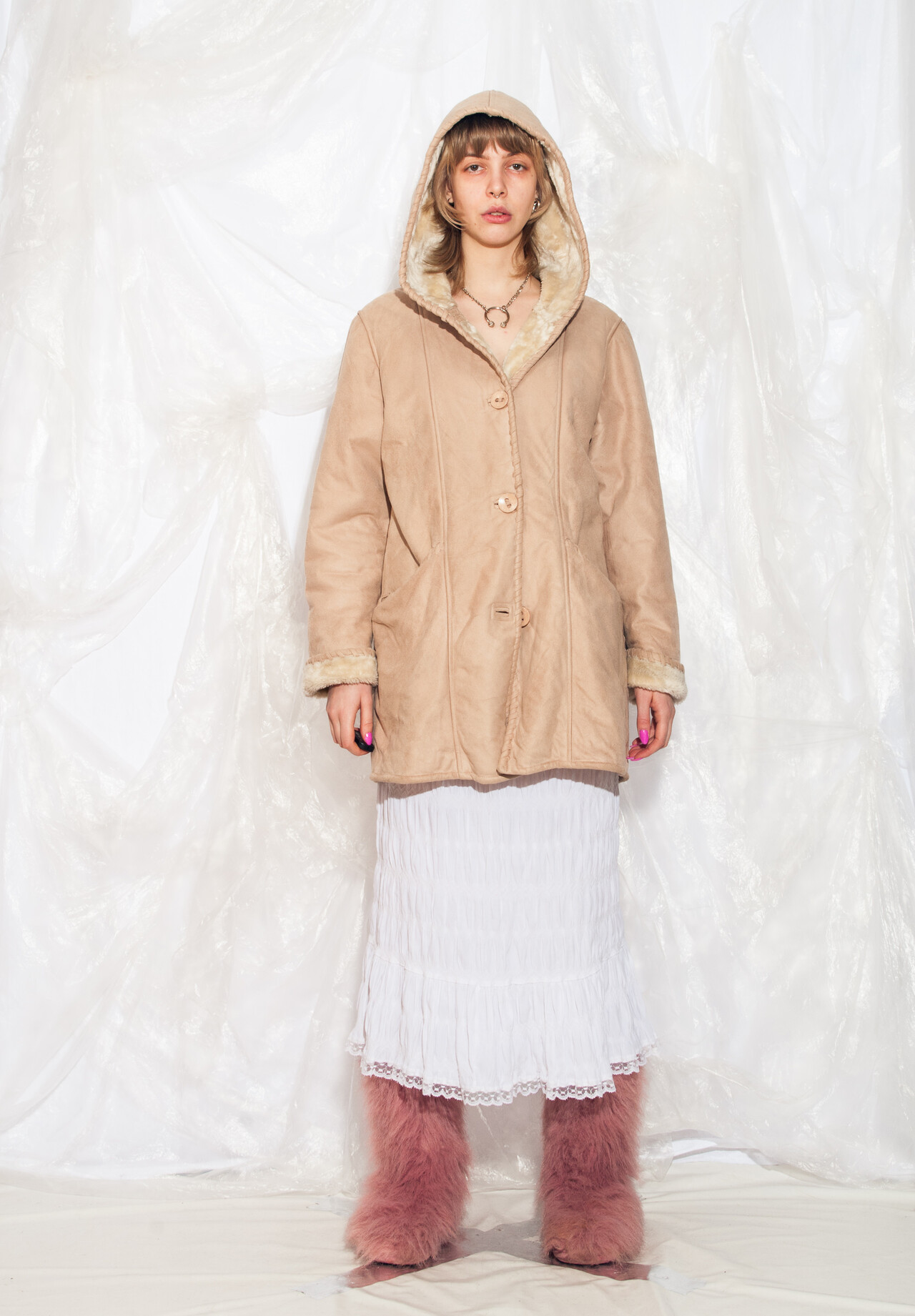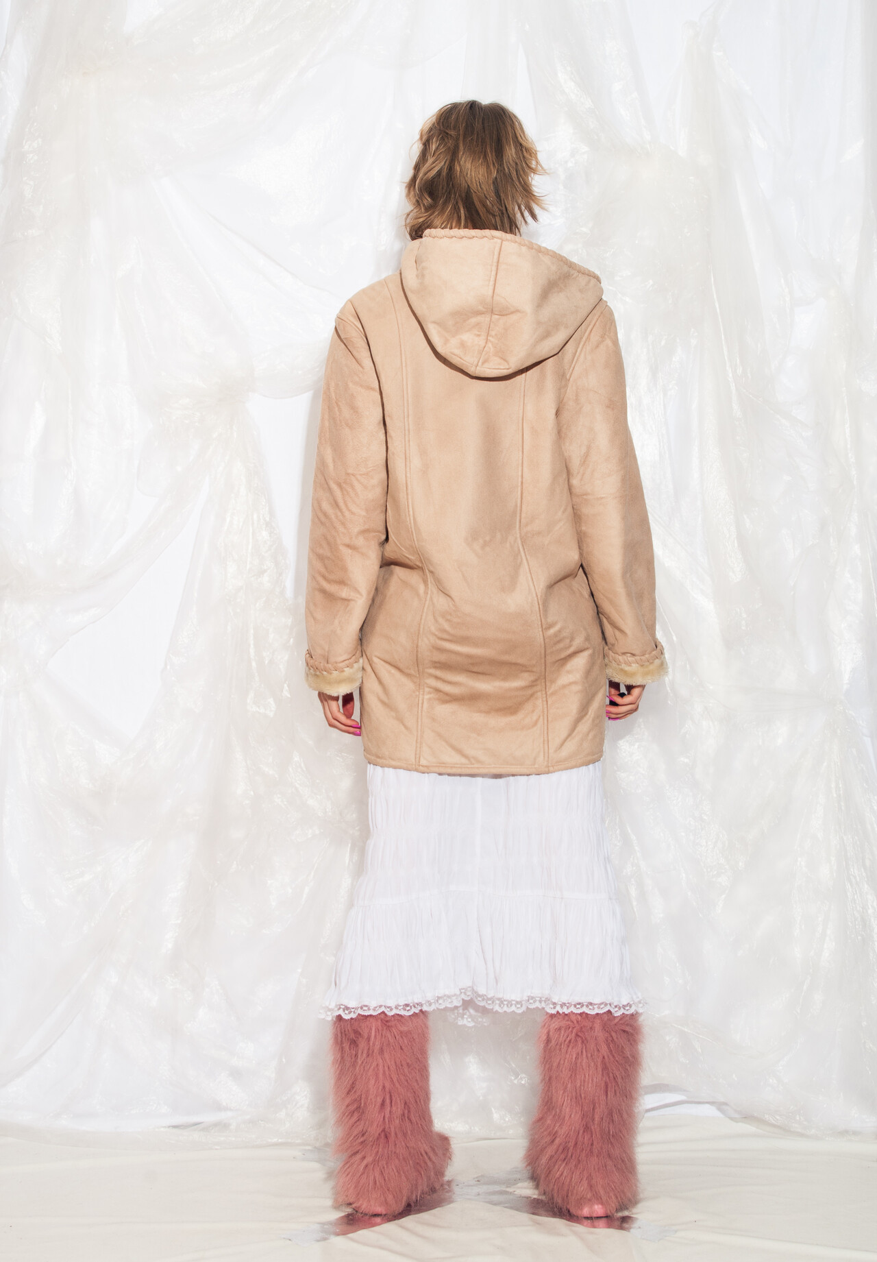 This 90s vintage coat is like a cosy time machine back to the era of Tamagotchis and inflatable furniture. Slip into this faux shearling hooded beauty and reignite your love for all things beige.